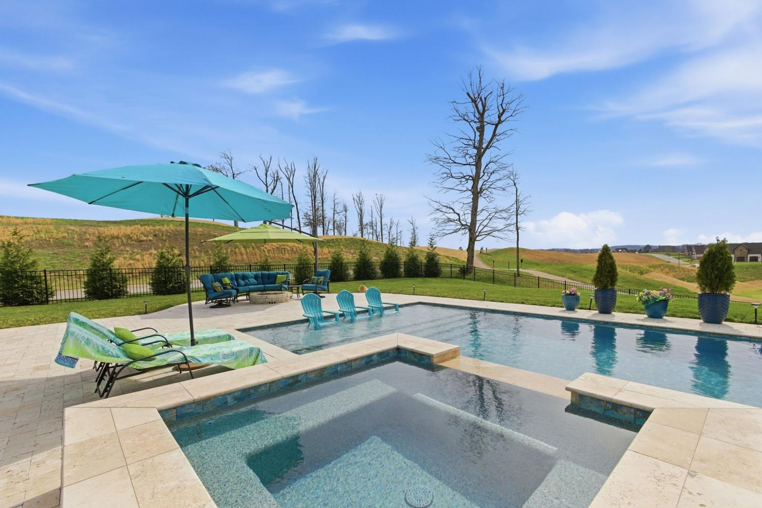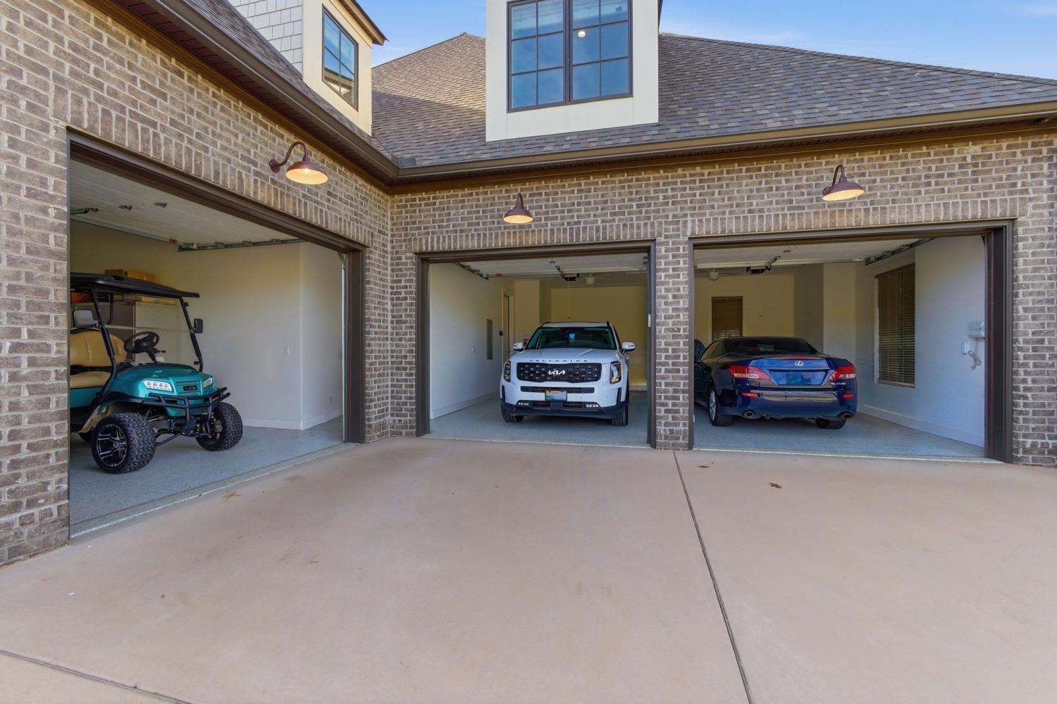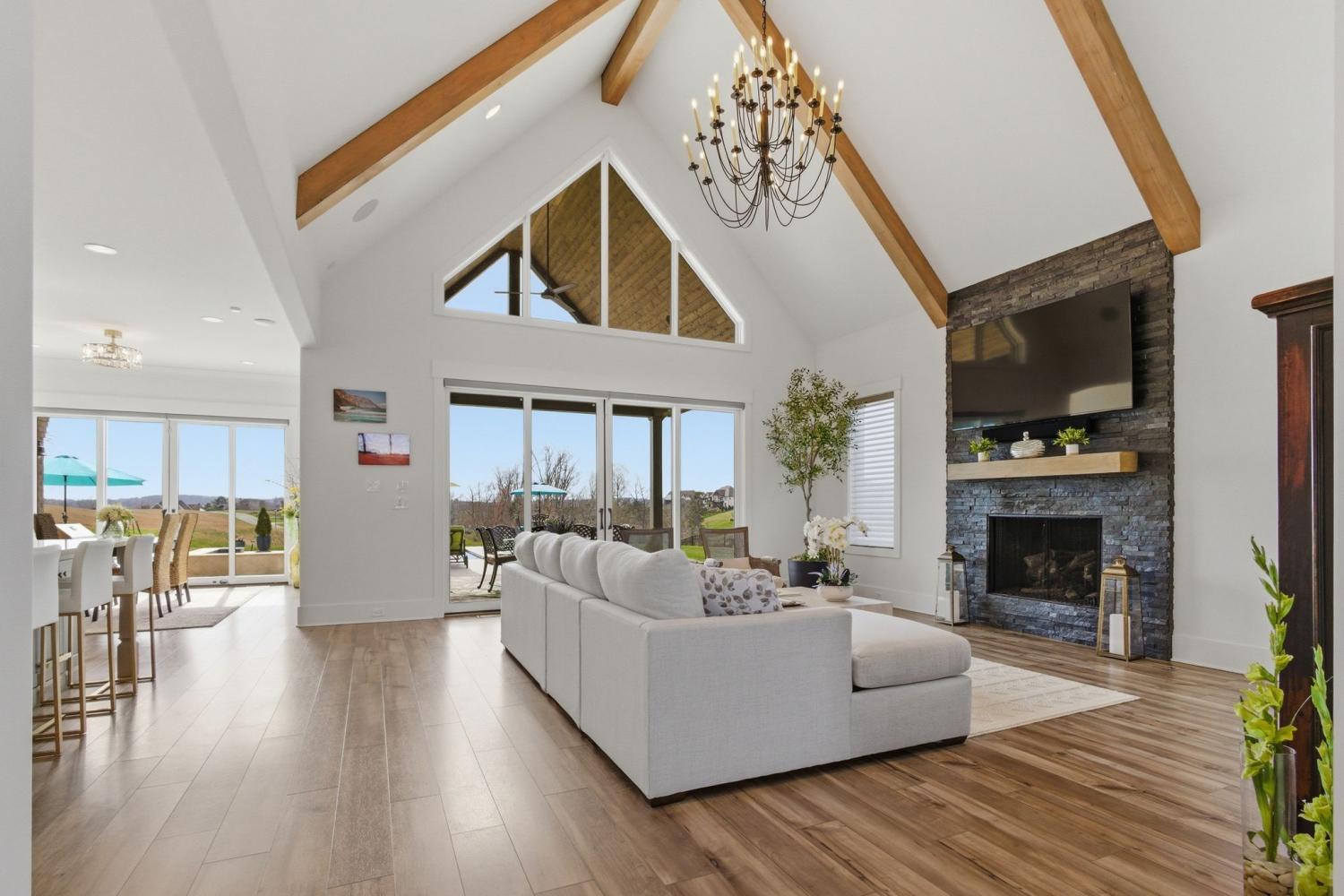 Welcome to 250 Bower Court, a custom-built 2023 luxury home on a flat 0.75-acre corner lot in the prestigious lake and golf community of WindRiver. Surrounded by a championship golf course on three sides, this 3,761 sq ft home offers stunning sunset and golf views. The home features 3 ensuite bedrooms, 3.5 bathrooms, a study with built-in file and printer cabinets, spacious bonus room with wet bar, a flex room, oversized two car garage + one car garage. Upgrades include motorized window treatments, integrated speaker system, security system, home water softener and HVAC purification, attic storage, and foam insulation. Soaring cathedral ceilings enhance the light-filled, open concept design featuring oversized sliding doors and a ledgestone gas fireplace. The chef’s kitchen offers custom cabinetry, under-cabinet lighting, quartz countertops, walk-in pantry, bar area, wine cooler, and a large island ideal for gathering. Designed for effortless lifestyle, this home features true main-level living with the primary suite, great room, dining room, and kitchen opening to your private backyard oasis with a resort-style pool/spa, a gas firepit and seating area with a 13' cantilever umbrella, and gas BBQ hook-up. Steps from the great room you will enjoy a large covered patio with a Sunbrite TV, ceiling fan, and exterior speakers. The expansive fenced yard is perfect for entertaining with golf course and sunset views over the 8th fairway and green. WindRiver is set along Tellico Lake and offers a marina, golf, pool/spa, pickleball, tennis, gym, hiking trails and views. Coming in 2026: 25,000 sq ft Clubhouse Village with first class dining, fitness, and other amenities. This is anticipated to be the premier social and lifestyle hub of the community. A rare opportunity to own a luxury home with panoramic views, main-level living, and resort-style amenities. Located just outside Knoxville–23 mins to McGhee Tyson Airport. No state income/pension tax! Experience all four seasons.