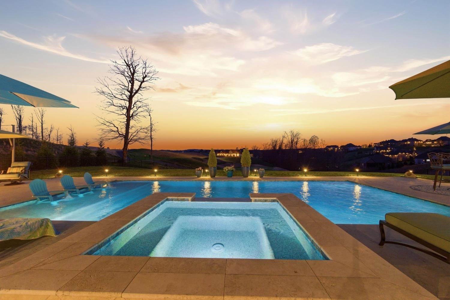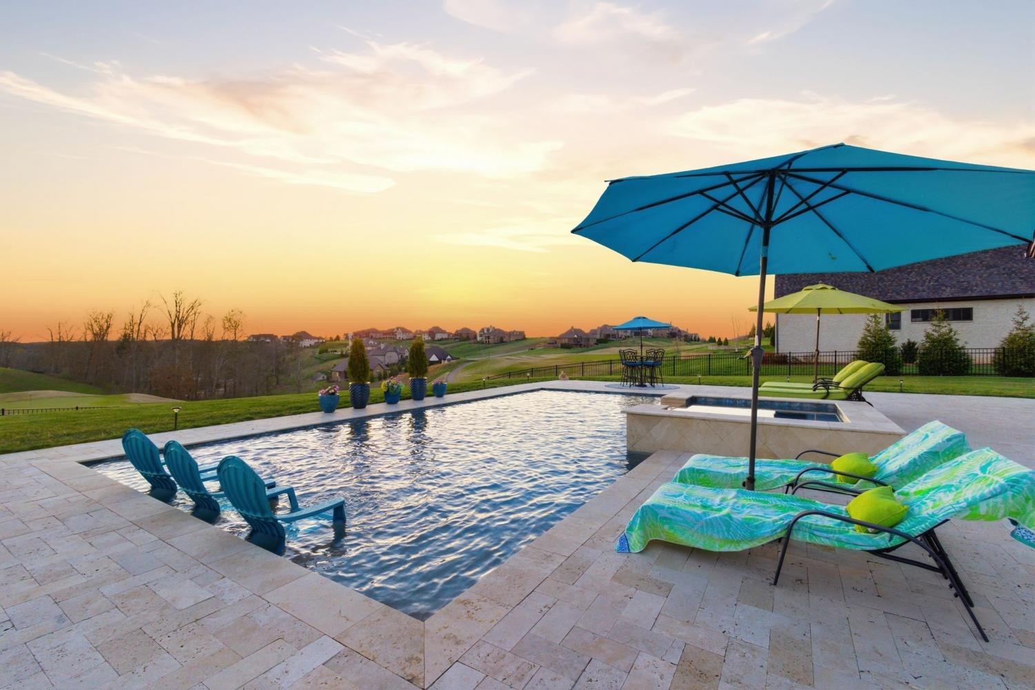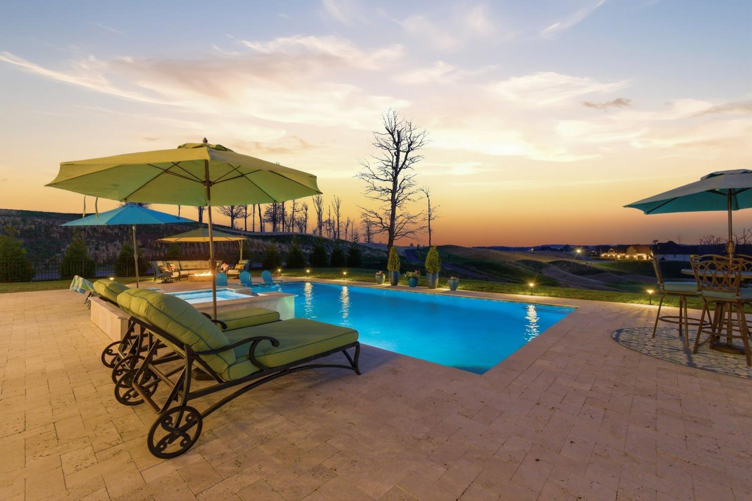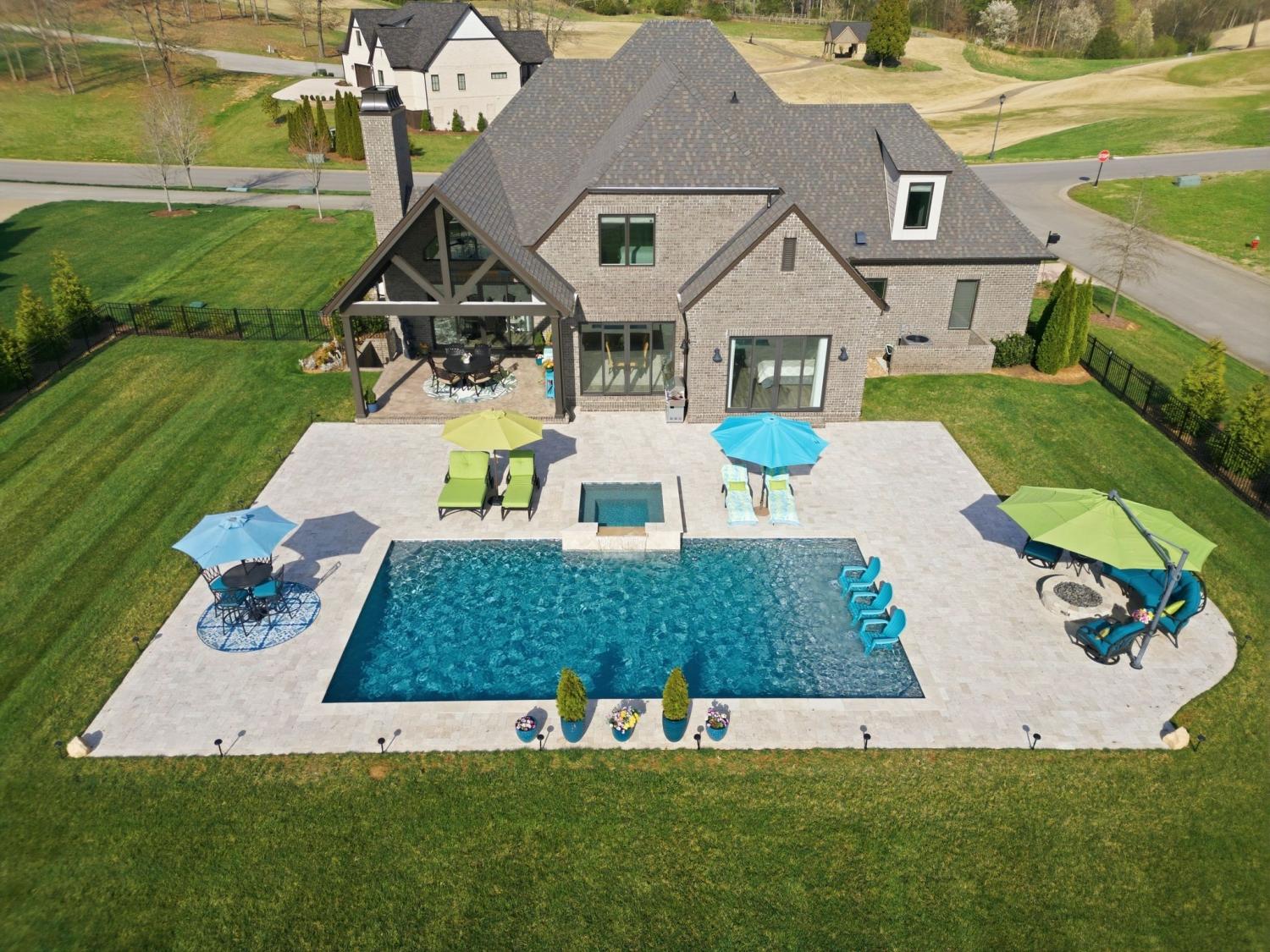 Welcome to 250 Bower Court, a custom-built 2023 luxury home on a flat 0.75-acre corner lot in the prestigious lake and golf community of WindRiver. Surrounded by a championship golf course on three sides, this 3,761 sq ft home offers stunning sunset and golf views. The home features 3 ensuite bedrooms, 3.5 bathrooms, a study with built-in file and printer cabinets, spacious bonus room with wet bar, a flex room, oversized two car garage + one car garage. Upgrades include motorized window treatments, integrated speaker system, security system, home water softener and HVAC purification, attic storage, and foam insulation. Soaring cathedral ceilings enhance the light-filled, open concept design featuring oversized sliding doors and a ledgestone gas fireplace. The chef’s kitchen offers custom cabinetry, under-cabinet lighting, quartz countertops, walk-in pantry, bar area, wine cooler, and a large island ideal for gathering. Designed for effortless lifestyle, this home features true main-level living with the primary suite, great room, dining room, and kitchen opening to your private backyard oasis with a resort-style pool/spa, a gas firepit and seating area with a 13' cantilever umbrella, and gas BBQ hook-up. Steps from the great room you will enjoy a large covered patio with a Sunbrite TV, ceiling fan, and exterior speakers. The expansive fenced yard is perfect for entertaining with golf course and sunset views over the 8th fairway and green. WindRiver is set along Tellico Lake and offers a marina, golf, pool/spa, pickleball, tennis, gym, hiking trails and views. Coming in 2026: 25,000 sq ft Clubhouse Village with first class dining, fitness, and other amenities. This is anticipated to be the premier social and lifestyle hub of the community. A rare opportunity to own a luxury home with panoramic views, main-level living, and resort-style amenities. Located just outside Knoxville–23 mins to McGhee Tyson Airport. No state income/pension tax! Experience all four seasons.