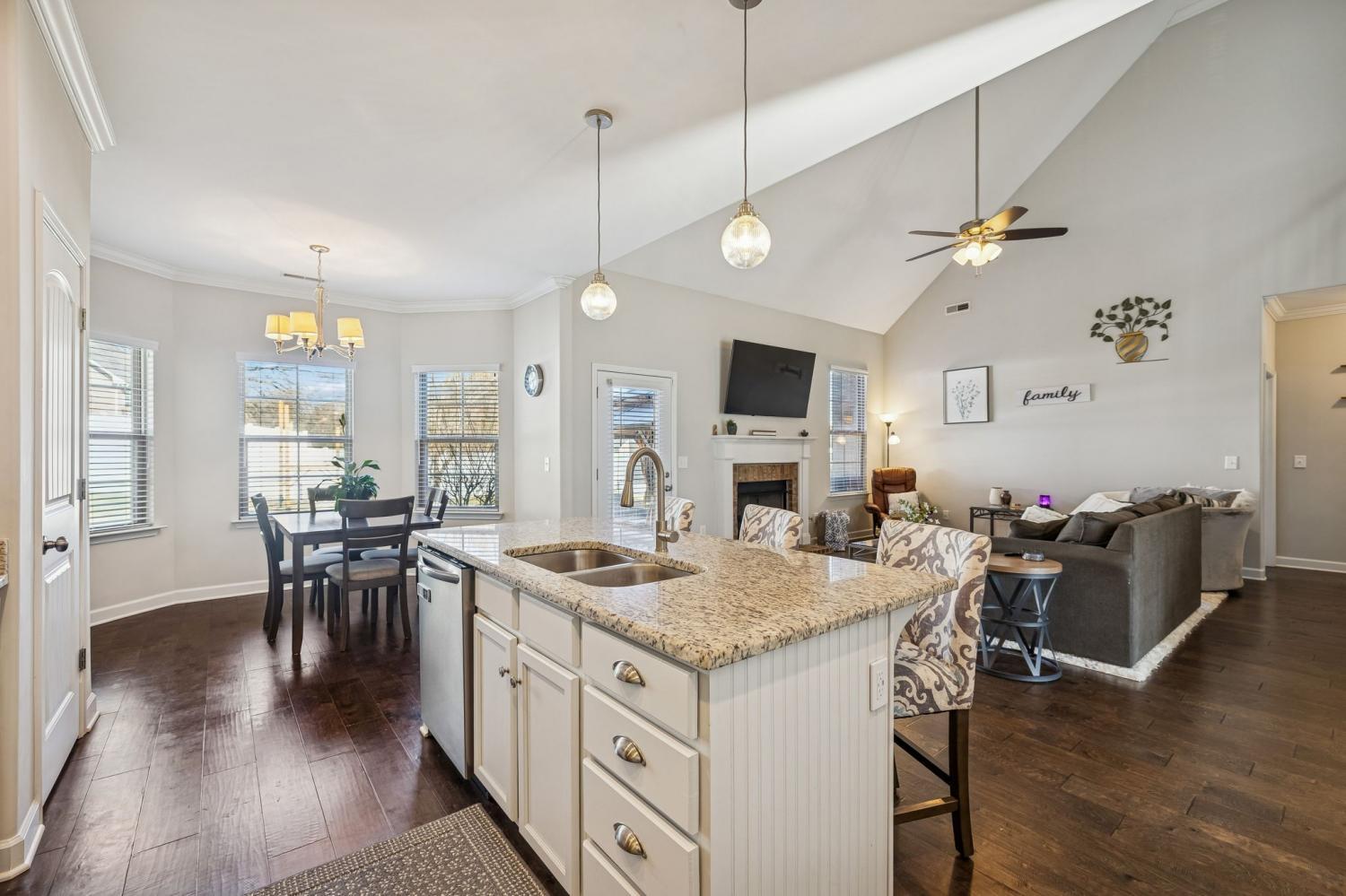 Welcome to 1600 Inverness Drive, where quality construction meets thoughtful upgrades in one of Spring Hills most sought after locations.Built in 2016, this 4 bedroom, 3 bath residence offers an open floor plan filled with character, space, and timeless finishes.The main level features vaulted ceilings, elegant custom rounded walls, and a seamless flow ideal for both everyday living and entertaining. The kitchen has white cabinets, granite countertops, and stainless steel appliances. The Primary suite is conveniently located on the main level, along with an additional bedroom, perfect for guests, a home office, or multigenerational living.Upstairs, you will find two spacious bedrooms and a large bonus room, offering flexible space for a media room, playroom, or a second living area. Throughout the home there are custom wood built shelving in the closets, upgraded LVP flooring, and new carpeting. Additional upgrades include whole home water filtration ,refrigerator, New fireplace insert, and a Vinyl privacy fencing. Home is equipped with 3 HVAC units for efficiency, creating a move in ready experience both inside and out. Situated on a corner lot, the home also includes an oversized 2 car garage. Minutes from shopping, dining, and top rated Williamson County schools. A luxury retail development called Sagefield is planned for the neighboring town for convenient shopping. Homes like this Don't come around often, schedule your showing today.