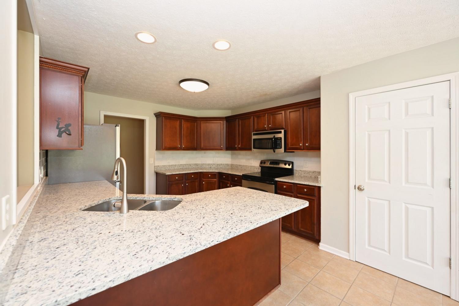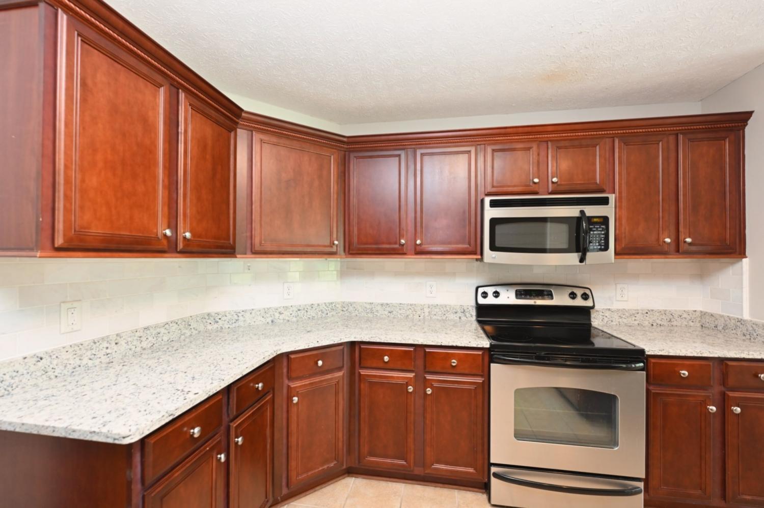 **BEAUTIFUL, WELL-MAINTAINED BRICK HOME ON A LOVELY 0.63-ACRE LOT IN A DESIRABLE NEIGHBORHOOD** Hardwood flooring in main living areas, primary bedroom, and in bonus room. Three bedrooms on the main level, including the large primary bedroom on the main level. Separate sitting area or office area in the primary bedroom. Primary bathroom has two sinks, soaking tub, and separate shower. Large primary walk-in closet. Kitchen is large with plenty of cabinet and counter space. Room for a table and bar stools in the eat-in kitchen, plus a separate formal dining room with high ceilings and a gorgeous wall of windows. Living room with grand vaulted ceiling, and fireplace, and views looking out into the lovely large backyard. Two additional bedrooms and a full bath on the other side of the main level (great for privacy). Huge bonus room a half-level above the main floor. And another room that could function as a fourth bedroom or an office a half-level above the bonus room. Very desirable floor plan. **HURRY HOME** $65 application fee. Each occupant 18 years and older must complete an application. No smoking. Small dogs on a case-by-case basis for $50 per month per pet. Washer & dryer included.