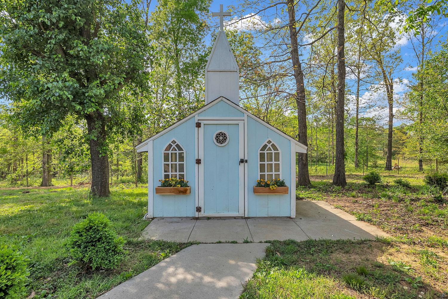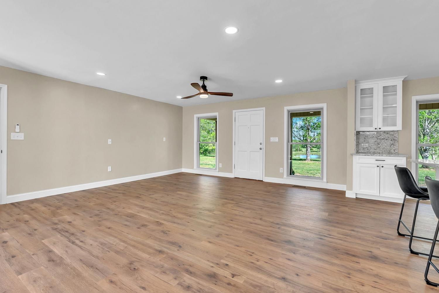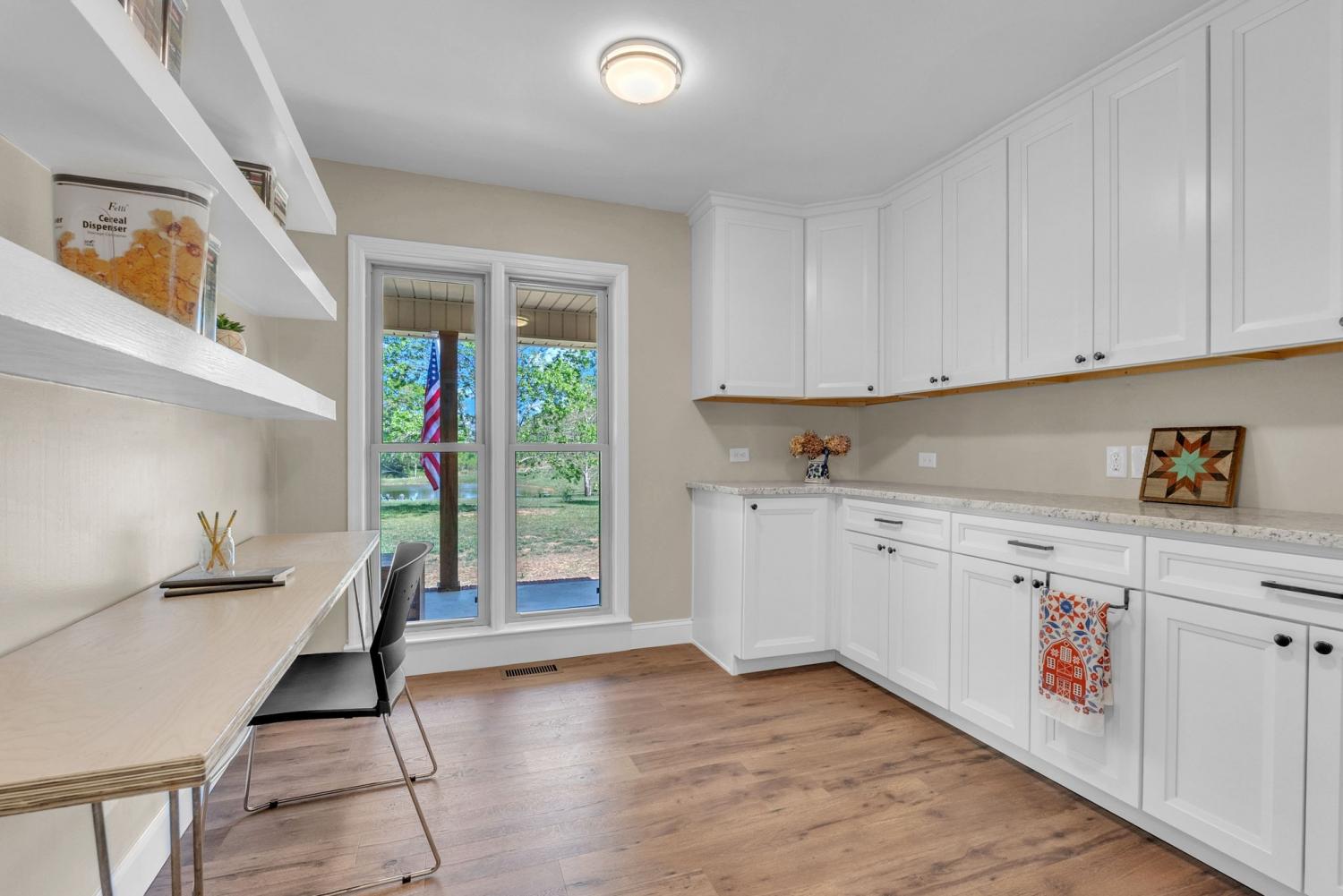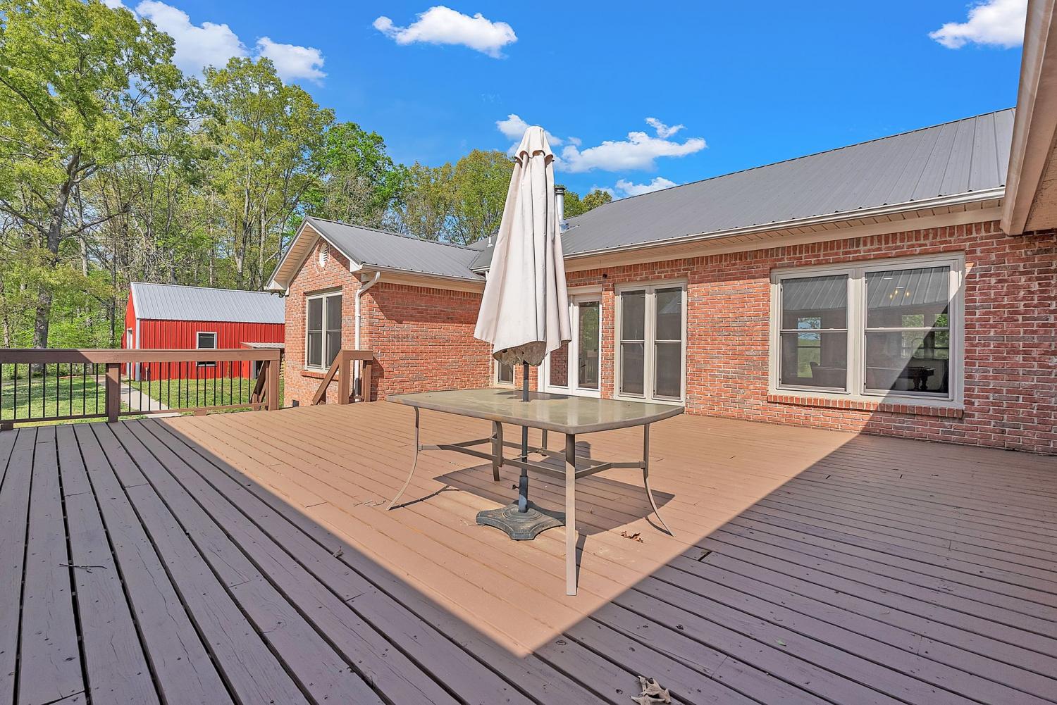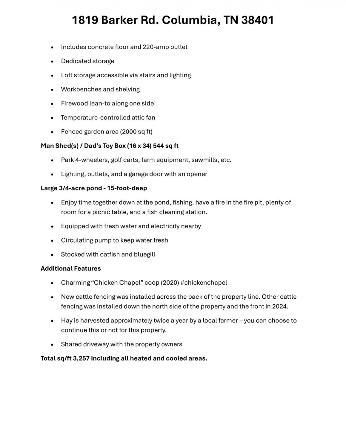 Stunning 5.8-Acre Country Estate with Stocked Pond Fully remodeled private retreat just one mile from I-65! This beautifully maintained 5.8-acre property features a serene ¾-acre stocked pond (15 ft deep) teeming with catfish & bluegill, open pasture, and wooded privacy. A breathtaking entrance lined with 21 mature crepe myrtles bursts with pink, purple, red, and white blooms each season. Wildlife abounds—deer, turkey, ducks, and geese frequent the pond, offering peaceful sunrise and moonrise views from the east-facing home and expansive front porch. The fully remodeled single-level, ranch home boasts a spacious open-concept layout with durable new Pergo wood flooring throughout. The chef’s kitchen shines w/ crisp white shaker cabinets, matte black hardware, “White Ice” granite countertops, a massive 7’6” x 5’1” island seating four, & new GE Profile appliances. It flows seamlessly into the living & dining areas, anchored by a cozy wood-burning stove. A separate pantry/study/office offers built-in granite counters and floating shelves. A luxurious primary suite bath with claw-foot soaking tub, walk-in shower, & double vanity. Two additional bedrooms share a full bath, plus a convenient updated powder room & laundry area. A generous 730 sq ft deck connects the main home to the attached 1,260 sq ft three-car garage with abundant storage. A fully self-contained 680 sqft guest house/mother-in-law suite provides a private bedroom, full bath, eat-in kitchen, living room, & washer/dryer hookups-ideal for extended family or rental income. Additional highlights: 544 sq ft Workshop w/ garage opener. Detached 384 sqft Studio/Office with vaulted beamed ceilings, new mini-split HVAC, & basement storm shelter/storage. 1,152 sq ft Pole Barn with concrete floors, 220amp service, loft storage, lean-to livestock area, workbenches, fenced 2,000 sqft garden, & optional hay production. A rare find offering privacy, convenience, and country charm! Your perfect mini farm.