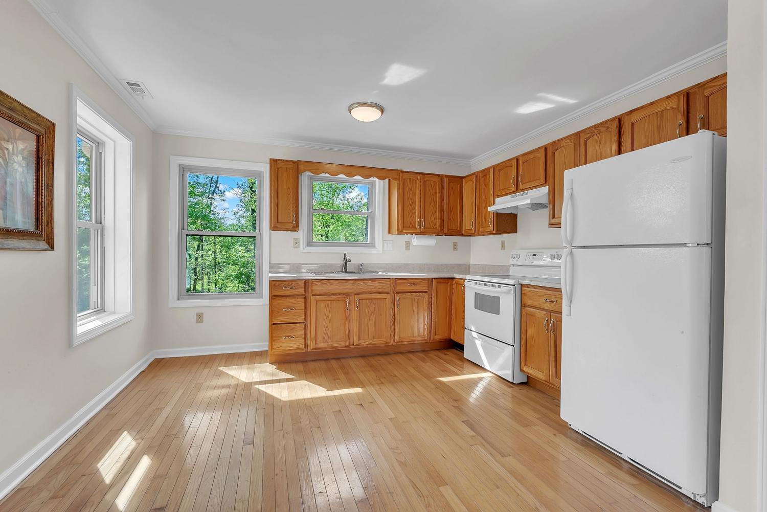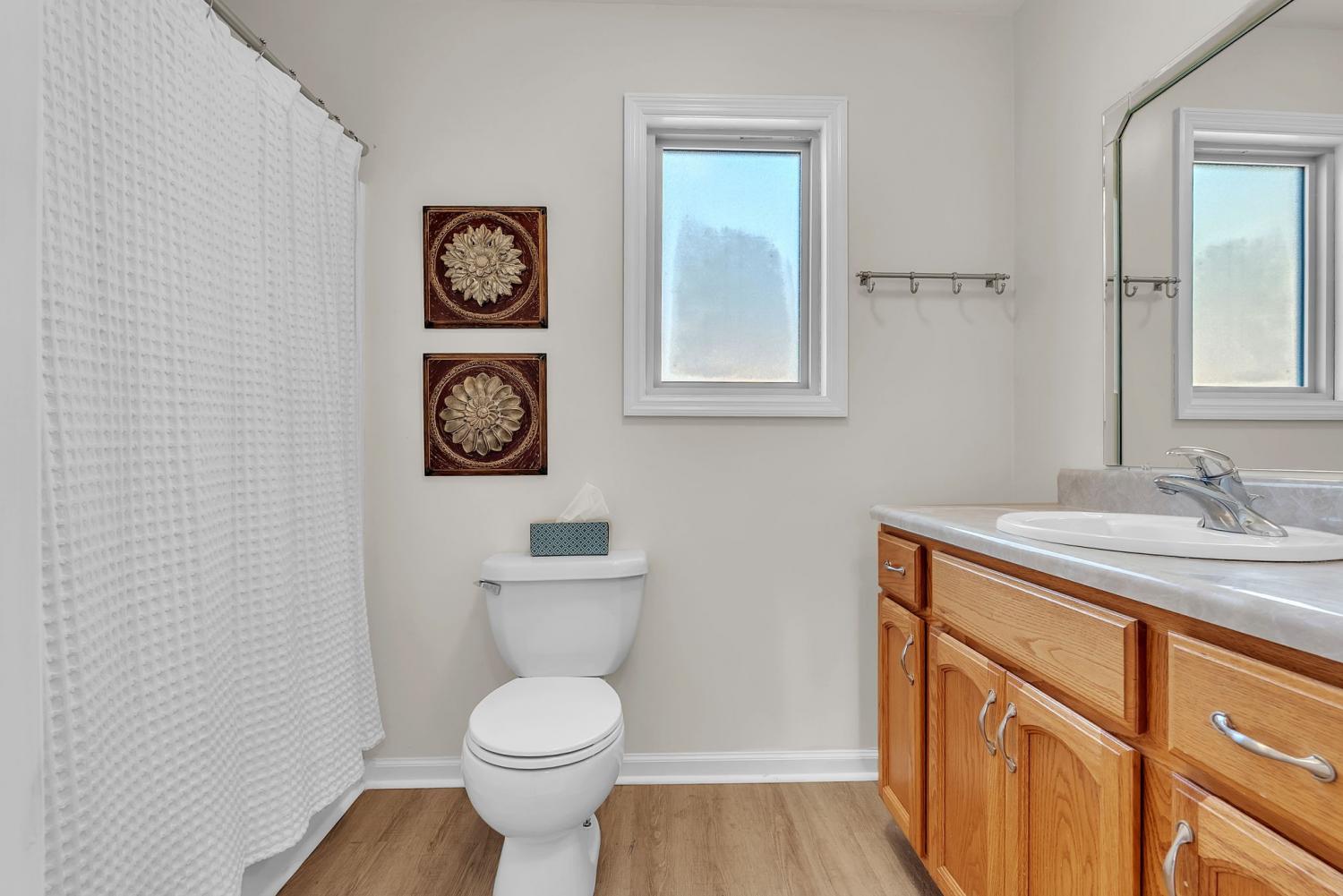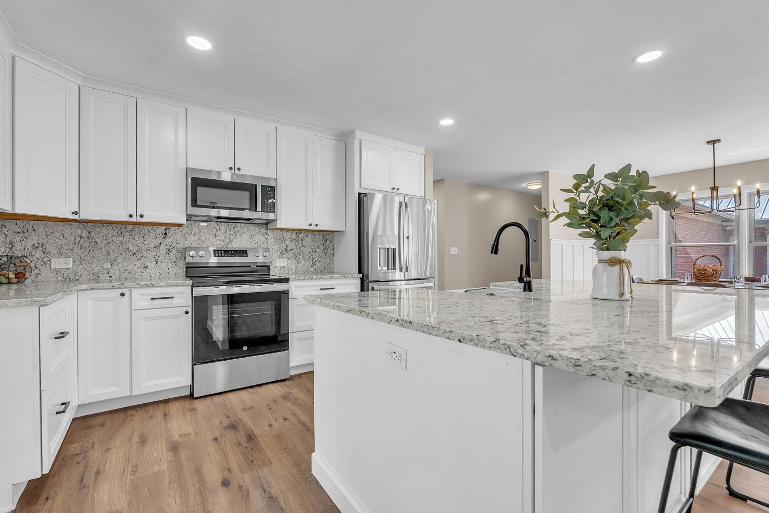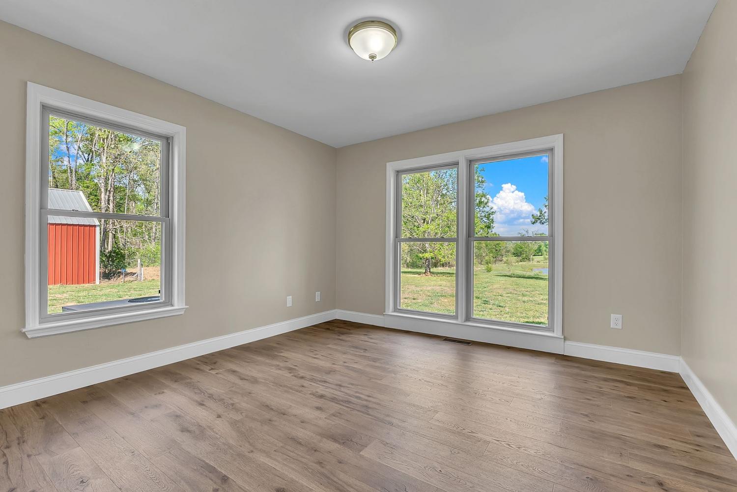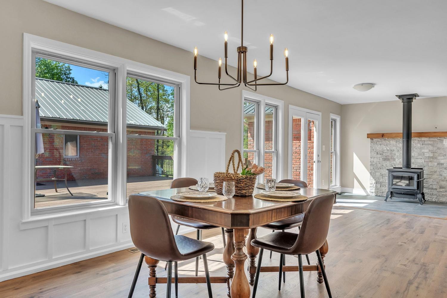 Stunning 5.8-Acre Country Estate with Stocked Pond Fully remodeled private retreat just one mile from I-65! This beautifully maintained 5.8-acre property features a serene ¾-acre stocked pond (15 ft deep) teeming with catfish & bluegill, open pasture, and wooded privacy. A breathtaking entrance lined with 21 mature crepe myrtles bursts with pink, purple, red, and white blooms each season. Wildlife abounds—deer, turkey, ducks, and geese frequent the pond, offering peaceful sunrise and moonrise views from the east-facing home and expansive front porch. The fully remodeled single-level, ranch home boasts a spacious open-concept layout with durable new Pergo wood flooring throughout. The chef’s kitchen shines w/ crisp white shaker cabinets, matte black hardware, “White Ice” granite countertops, a massive 7’6” x 5’1” island seating four, & new GE Profile appliances. It flows seamlessly into the living & dining areas, anchored by a cozy wood-burning stove. A separate pantry/study/office offers built-in granite counters and floating shelves. A luxurious primary suite bath with claw-foot soaking tub, walk-in shower, & double vanity. Two additional bedrooms share a full bath, plus a convenient updated powder room & laundry area. A generous 730 sq ft deck connects the main home to the attached 1,260 sq ft three-car garage with abundant storage. A fully self-contained 680 sqft guest house/mother-in-law suite provides a private bedroom, full bath, eat-in kitchen, living room, & washer/dryer hookups-ideal for extended family or rental income. Additional highlights: 544 sq ft Workshop w/ garage opener. Detached 384 sqft Studio/Office with vaulted beamed ceilings, new mini-split HVAC, & basement storm shelter/storage. 1,152 sq ft Pole Barn with concrete floors, 220amp service, loft storage, lean-to livestock area, workbenches, fenced 2,000 sqft garden, & optional hay production. A rare find offering privacy, convenience, and country charm! Your perfect mini farm.