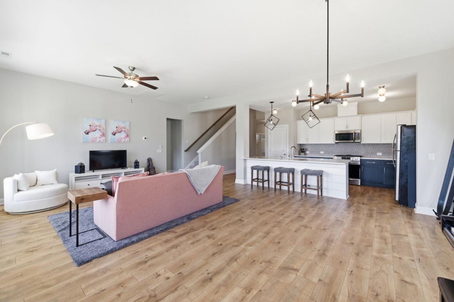 Tucked against a protected greenway with peaceful nature views that will never be built on, this immaculately kept, like-new residence offers a rare blend of privacy, thoughtful upgrades, and everyday comfort that truly stands out. Mornings begin on the covered patio overlooking mature trees and a natural water source, while inside, soaring ceilings, expansive windows, and a spacious, light-filled layout create an inviting atmosphere throughout. The oversized quartz island anchors a beautifully upgraded kitchen designed for both entertaining and daily living, complemented by designer lighting, abundant cabinetry, and elevated finishes rarely found at this level. The owner’s suite delivers a private retreat with a spa-like bath featuring a garden tub, a large tiled walk-in shower, and an expansive walk-in closet conveniently connected for effortless living. Every detail has been considered, from tile in all bathrooms and a fully upgraded laundry room with quartz workspace and utility sink, to whole-house water filtration, enhanced air quality systems, and extensive custom lighting for a warm, elevated feel. Upstairs, a generous bonus space offers flexibility for a studio, playroom, or additional living area. Beyond the home itself, the neighborhood offers a true sense of community with a low HOA and engaged residents, while direct access to an 8-mile greenway provides a lifestyle centered around wellness, connection, and convenience. A rare opportunity to rent a beautifully upgraded, barely lived-in property in a setting that offers both tranquility and long-term value.