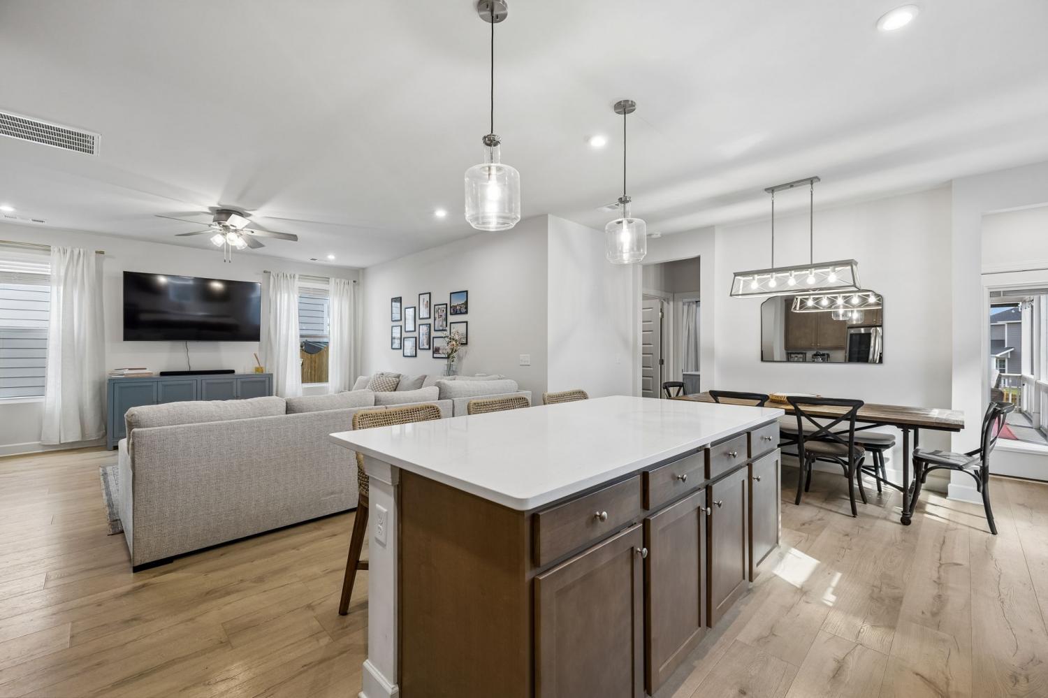 Located in the highly sought-after Waverly community in Mt. Juliet, this home stands out as one of the only properties in the neighborhood featuring a true outdoor oasis, complete with a huge screened-in patio and extended outdoor living space. Designed for year-round enjoyment, this one, of-a-kind setup offers the perfect place to relax, entertain, and take full advantage of the beautifully maintained fenced backyard! Inside, the home offers the perfect blend of style, space, and functionality. Inviting curb appeal and a welcoming front entry set the tone as you step into a bright, open-concept main living area filled with abundant natural light and a seamless flow between the living room, dining area, and kitchen. The spacious kitchen is a chef’s dream with a large center island, breakfast bar seating, quartz countertops, stainless steel appliances, ample cabinetry, a pantry, and even a perfectly designated area for a coffee bar. The primary suite is conveniently located on the main level and features tray ceilings, a large walk-in closet, and a private ensuite with double vanities and a beautifully tiled walk-in shower. Upstairs, you’ll find generously sized secondary bedrooms along with a versatile bonus loft space, perfect for a second living area, home office, or playroom. Additional highlights include a dedicated laundry room and thoughtful storage throughout. If you’ve been looking for something truly different in Waverly, this home delivers by combining indoor comfort with an unmatched outdoor living experience. Move-in ready and designed for modern living! Grocery shopping less than 5 minutes away! Right off of Highway 109, easy access to Lebanon, Mt Juliet and Gallatin! BNA less than 20 minutes