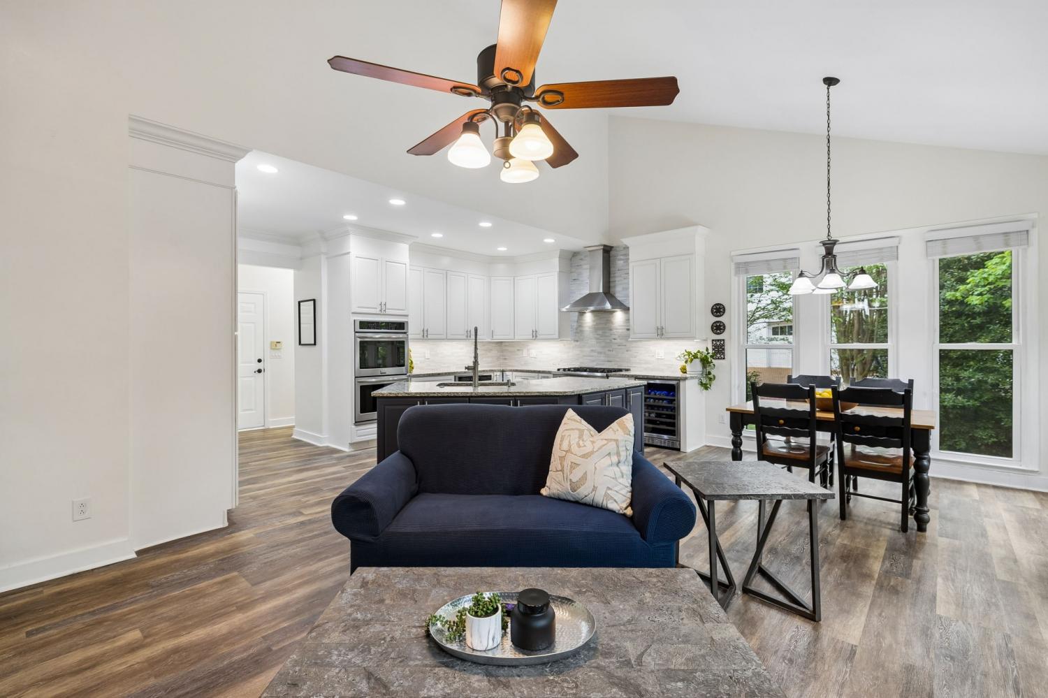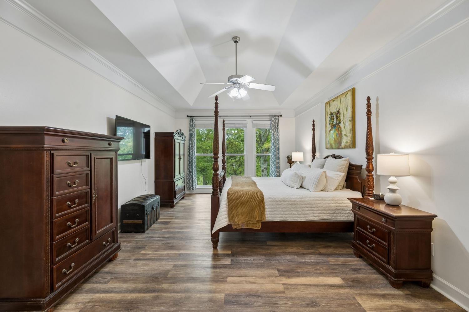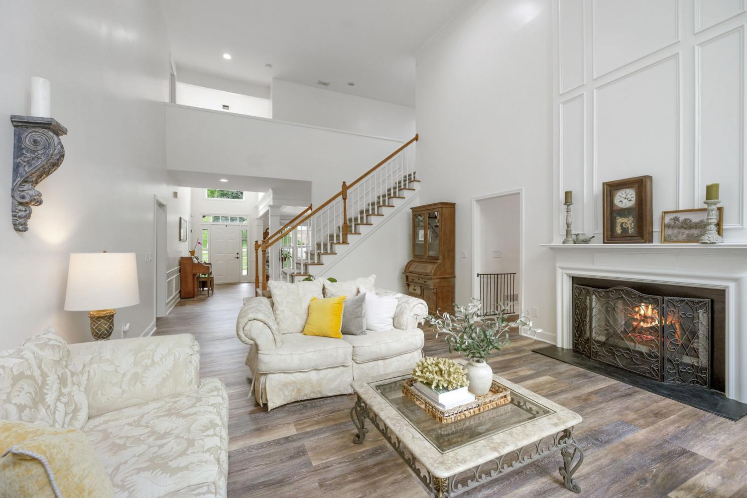 Welcome to this Raintree Forest gem WITH a Basement! Featuring stunning curb appeal with white brick, black roof, and black gutters. This home backs up to mature trees and a common area, so it feels like you are on a couple of acres WITH a Fully fenced and irrigated yard. Inside, the inviting foyer leads to a formal dining room and breathtaking double-story wall of windows filling the house with natural light and a view of lush mature trees. Sip your coffee in the recently updated kitchen and keeping room with a gas fireplace. The kitchen is light and bright with plenty of prep space, gas stove top and double ovens, perfect for entertaining! The main floor primary bedroom features a 2026 updated primary bath ensuite with a brand new free-standing tub, gorgeous tile floors, and tile shower. Upstairs, you'll find 3 bedrooms, including one with an ensuite bath and two sharing a Jand-and-Jill bath, plus an additional hobby or office space. Enjoy the convenience of a main-level garage and still more parking pad space for at least 3 more cars. PLUS, there is shop space in the basement with doors to open up for your rider mower or golf cart. Plenty of bonus space for all your tools and toys. The partially finished walk-out basement has a large bedroom and a bonus room. Wait, there's more... there is also over 1,000 sq ft of unfinished basement storage space. Plenty of room to grow and add equity in this amazing home. Tankless water heater, new paint throughout, new windows, roof (2018) and driveway. Zoned to award-winning Williamson County Ravenwood High School. Over $400K in upgrades. See attached list.