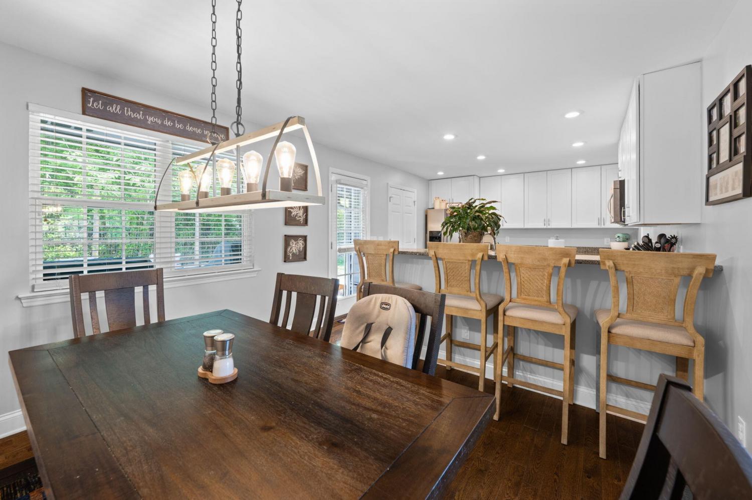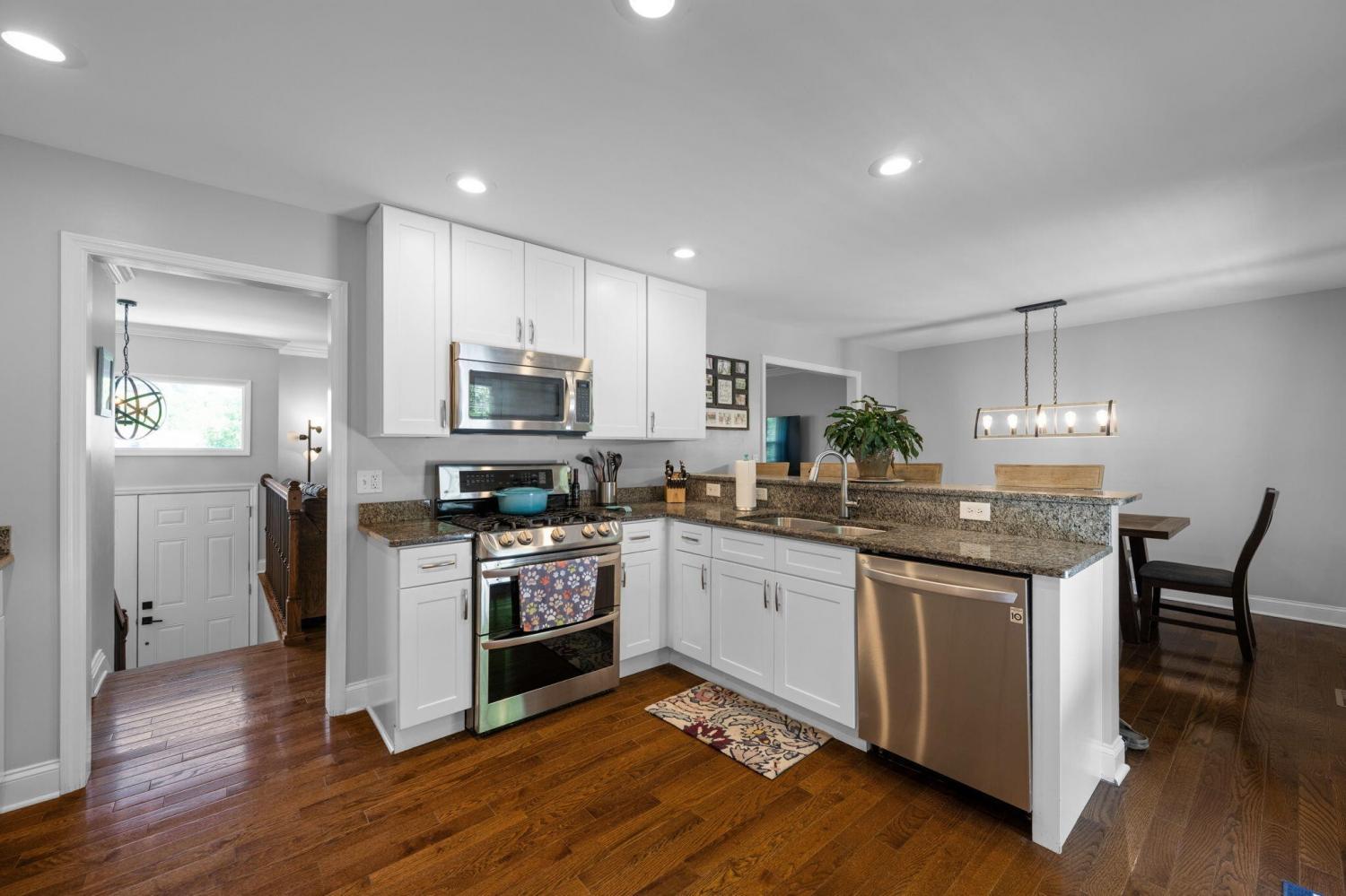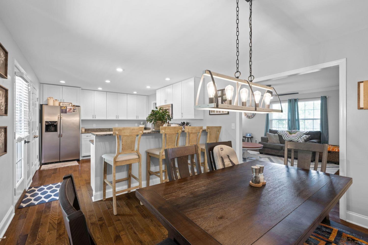 Welcome to this beautiful, move-in ready home in the sought-after Cedar Creek subdivision--conveniently located just minutes from shopping and dining near Hamilton Place. Inside, you'll find hardwood floors throughout the main living areas and tile in the bathrooms, offering both style and durability. The kitchen is open, bright, and designed for everyday living, featuring full-height cabinets, soft-close drawers, granite countertops, and stainless steel appliances, including a double oven gas range and refrigerator. The breakfast bar flows easily into the dining area, creating a perfect setup for entertaining or spending time with family. The primary bedroom is generously sized and features an adjoining bath with dual vanities and a separate shower. Two additional main-level bedrooms offer ample space and good closet storage. The stylish second full bath includes dual vanities, tile flooring, and a tiled tub surround. The lower level features a spacious den with a fireplace and wood-look flooring, along with a third updated full bath. An additional room, or fourth bedroom, finished with ceramic tile, provides flexible space ideal for a home office, guest room, or extra storage. The garage is well-sized with room for storage, and a new outbuilding offers even more space for lawn equipment or additional storage needs. Situated on a generous 1.78-acre lot, there's plenty of room to enjoy the outdoors. The new back deck is a great place to relax or host gatherings while taking in the surrounding space.
