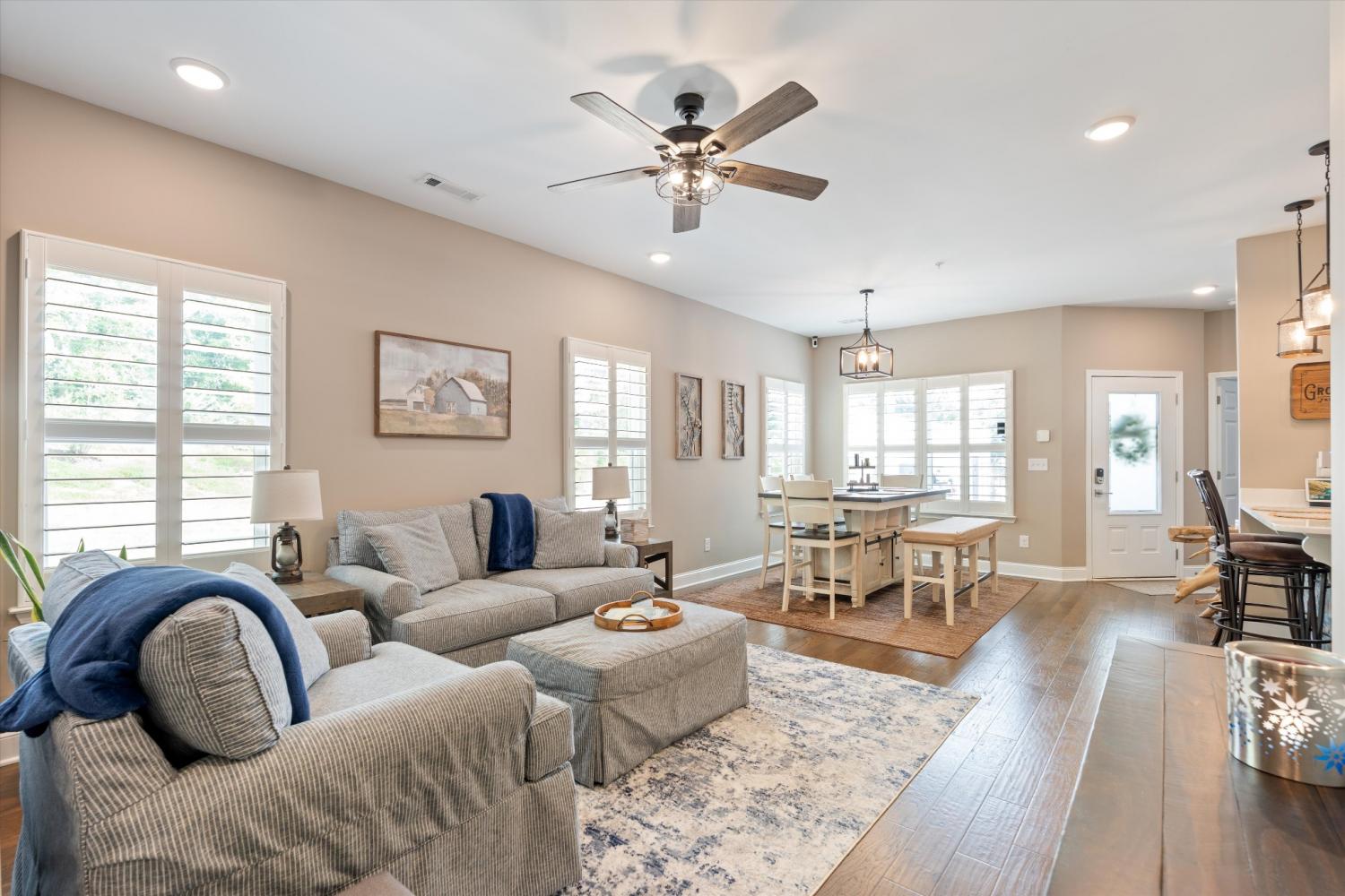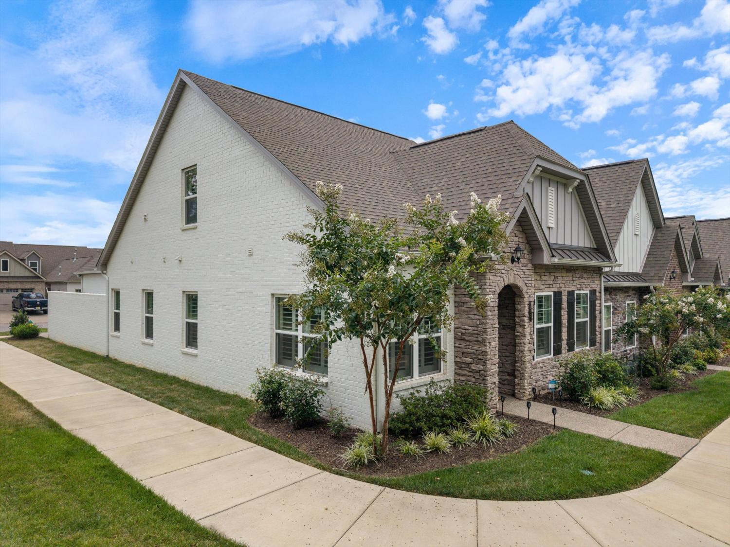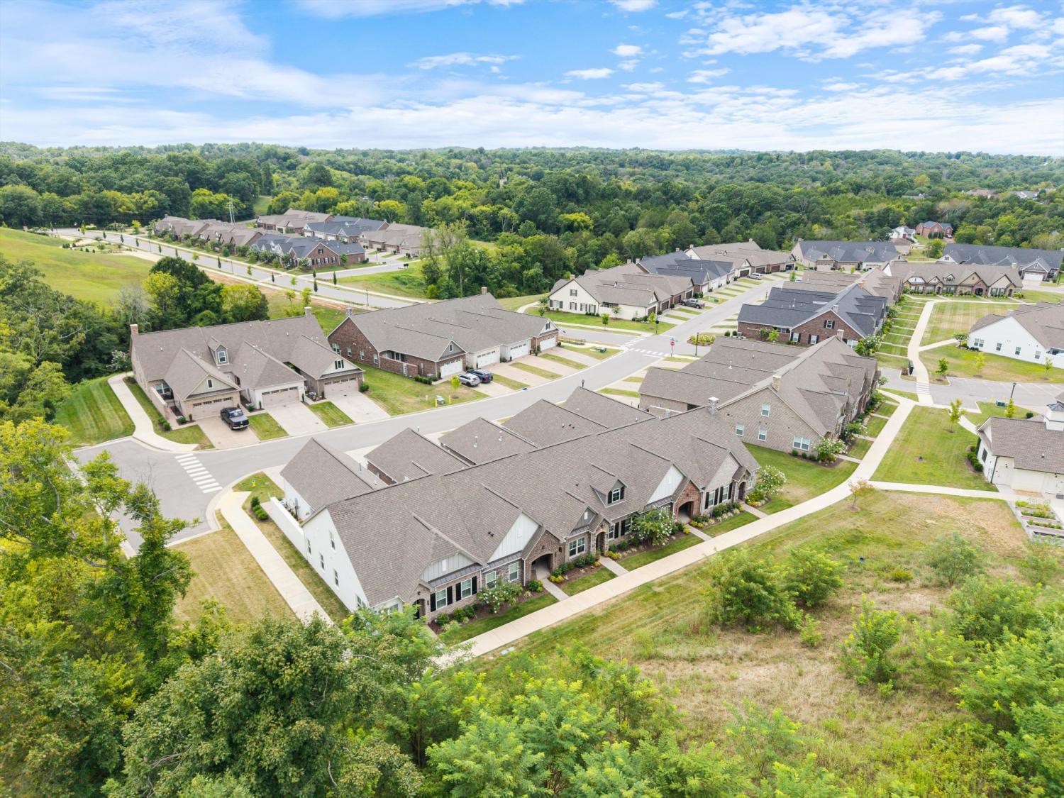 True one-level living in one of Mount Juliet's most sought-after 55+ communities... and this end-unit is worth the wait. Tucked at the end of a quiet cul-de-sac and surrounded by trees, this 3-year-old home delivers the low-maintenance lifestyle you've been looking for without sacrificing space or location. Minutes to I-40, Walmart, Target, Publix, and Kroger... peaceful setting, close to everything. Convenient to medical offices, specialty physicians, and hospitals serving the greater Nashville and Mt. Juliet area for convenience and peace of mind. Main-Level Living Done Right Hardwood floors and plantation shutters throughout. Open-concept kitchen and living area with quartz countertops, under-cabinet lighting, a spacious pantry, and an electric fireplace for those Tennessee evenings. Primary suite features a frameless tile shower, double vanity, and large walk-in closet. A second bedroom plus a flexible den round out the main level... perfect for a home office, hobby room, or guest space. Bonus Space When You Need It Upstairs bonus room with a full bath is ready for guests, media, or a workout space... tucked away when you don't need it. Outdoor Living, Simplified Fenced patio. Epoxy-floored 2-car garage. No yard work. Community Amenities Clubhouse, putting green, fire pit, grilling area, community flower garden, two dog parks, and walking trails. Searching for 55+ homes in Mount Juliet, active adult communities in Wilson County, or low-maintenance attached homes near Nashville? This one checks every box. Floor plan available in photos.