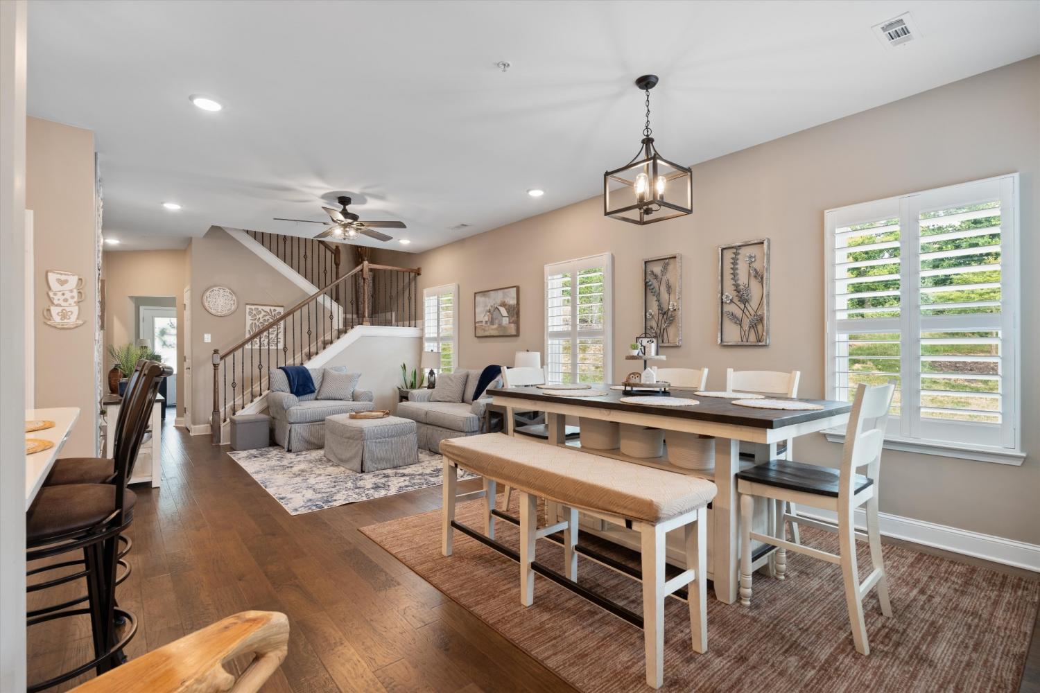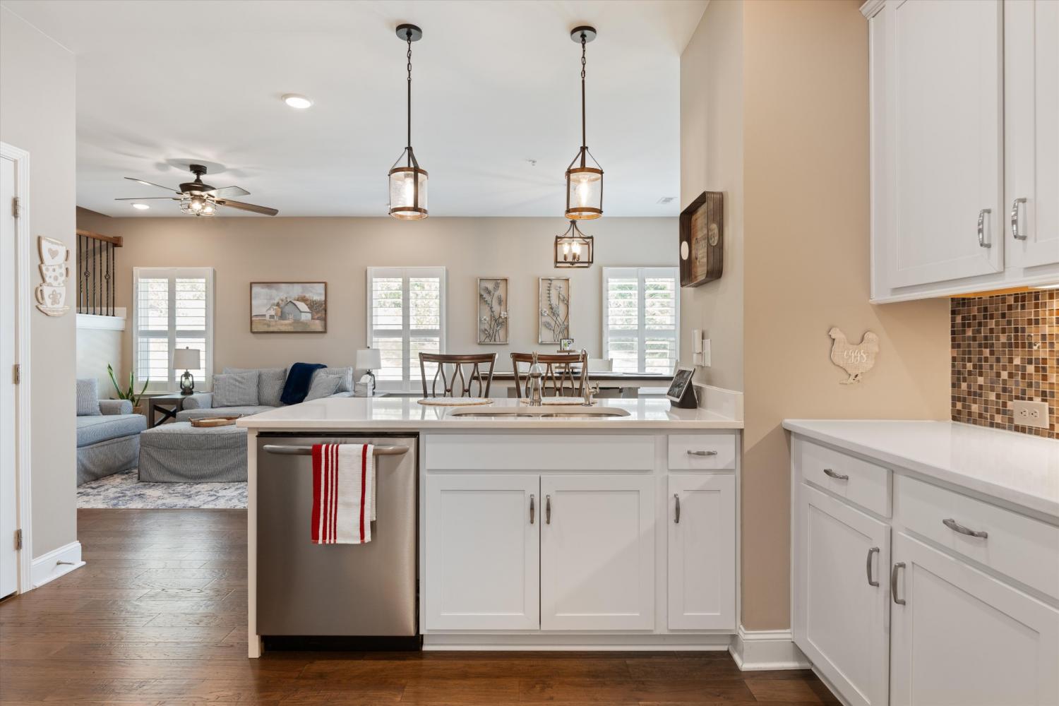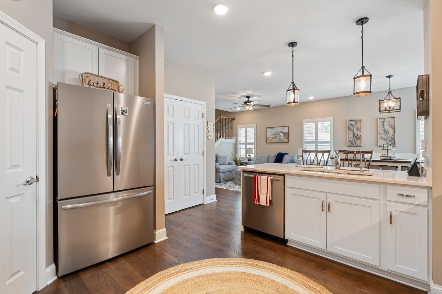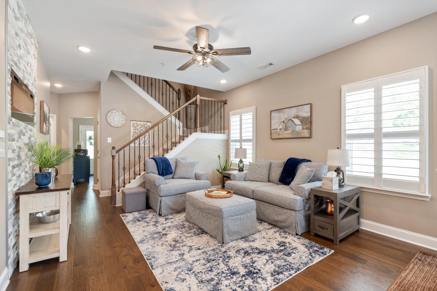 True one-level living in one of Mount Juliet's most sought-after 55+ communities... and this end-unit is worth the wait. Tucked at the end of a quiet cul-de-sac and surrounded by trees, this 3-year-old home delivers the low-maintenance lifestyle you've been looking for without sacrificing space or location. Minutes to I-40, Walmart, Target, Publix, and Kroger... peaceful setting, close to everything. Convenient to medical offices, specialty physicians, and hospitals serving the greater Nashville and Mt. Juliet area for convenience and peace of mind. Main-Level Living Done Right Hardwood floors and plantation shutters throughout. Open-concept kitchen and living area with quartz countertops, under-cabinet lighting, a spacious pantry, and an electric fireplace for those Tennessee evenings. Primary suite features a frameless tile shower, double vanity, and large walk-in closet. A second bedroom plus a flexible den round out the main level... perfect for a home office, hobby room, or guest space. Bonus Space When You Need It Upstairs bonus room with a full bath is ready for guests, media, or a workout space... tucked away when you don't need it. Outdoor Living, Simplified Fenced patio. Epoxy-floored 2-car garage. No yard work. Community Amenities Clubhouse, putting green, fire pit, grilling area, community flower garden, two dog parks, and walking trails. Searching for 55+ homes in Mount Juliet, active adult communities in Wilson County, or low-maintenance attached homes near Nashville? This one checks every box. Floor plan available in photos.