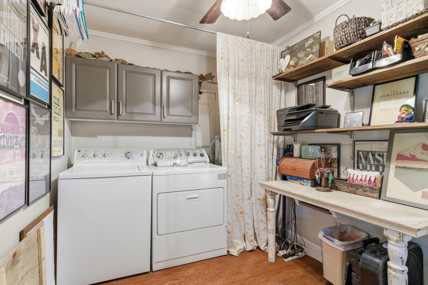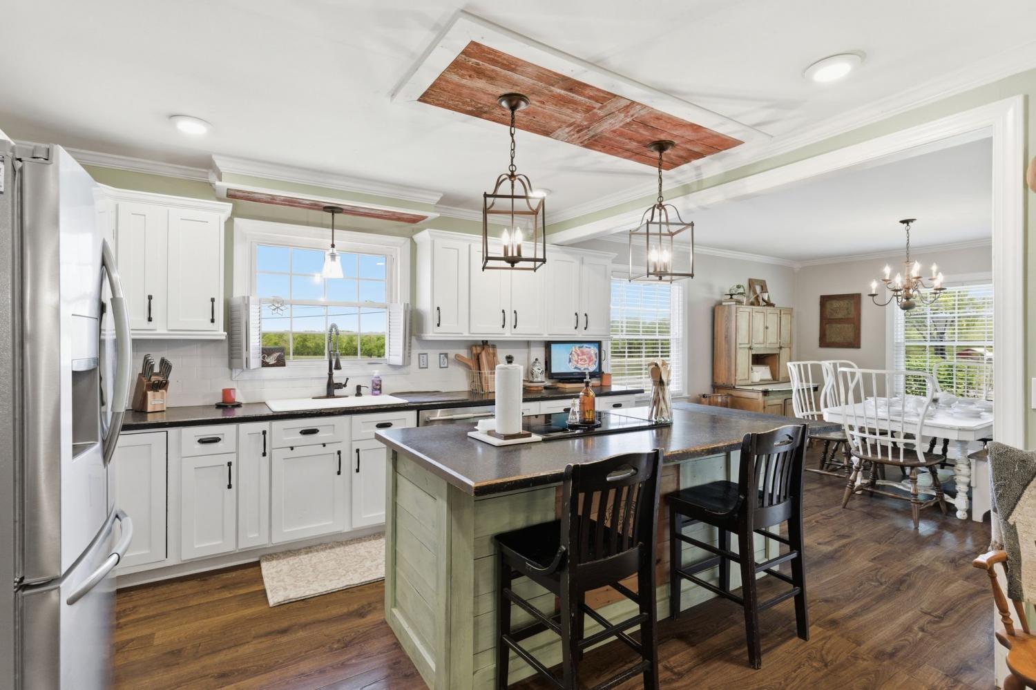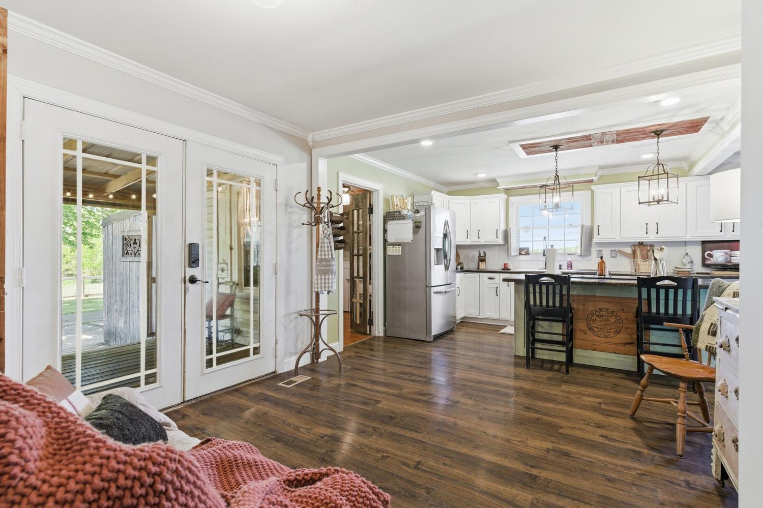 Welcome to this adorable cottage in White House — full of charm and character. Sitting on nearly half an acre, this 2‑bed, 1.5‑bath home feels like a cozy retreat. The kitchen is a dream with its big island, pendant lights, white shaker cabinets, and stainless appliances. A spacious laundry room and separate dining area make everyday living easy. French doors lead you into a warm, inviting living room centered around a stunning fireplace. The bathroom features a beautiful walk‑in tiled shower, and the oversized attic offers exciting potential for extra living space or storage. You will love the covered, screened‑in back deck and the fenced backyard that backs up to a peaceful tree line, giving you privacy and room to relax. The detached garage is perfect for a workshop, hobby space, or a place to park your car. The crawl space has recently been encapsulated with a dehumidifier, and the metal roof is approximately 5-6 years old. This place is truly unique and has so much to offer. Schedule your appointment today! Professional pictures coming soon.