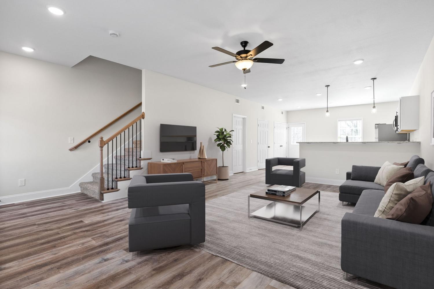 Enjoy stylish touches like ceiling fans, fresh paint, and elegant granite countertops with stainless steel appliances in the kitchen. Trendy LVP flooring enhances the living areas, while plush carpeting adds comfort to bedrooms. With a 1-car garage and extra storage, & bonus room with ample space. Step onto your deck for fresh air and beautiful views. This pet-friendly property is conveniently located near shopping, dining, and outdoor activities at Heritage Park & Soccer Fields. Easy access to Post ensures a stress-free commute. 2 Pets 50 LBS. comb. Wt. or less at maturity, are welcome. Pet fees & breed restrictions apply.