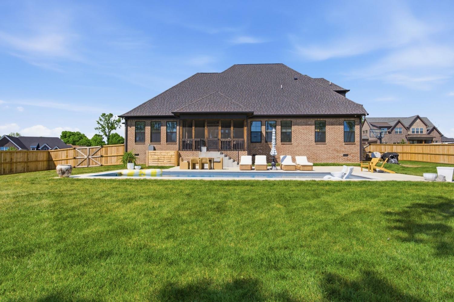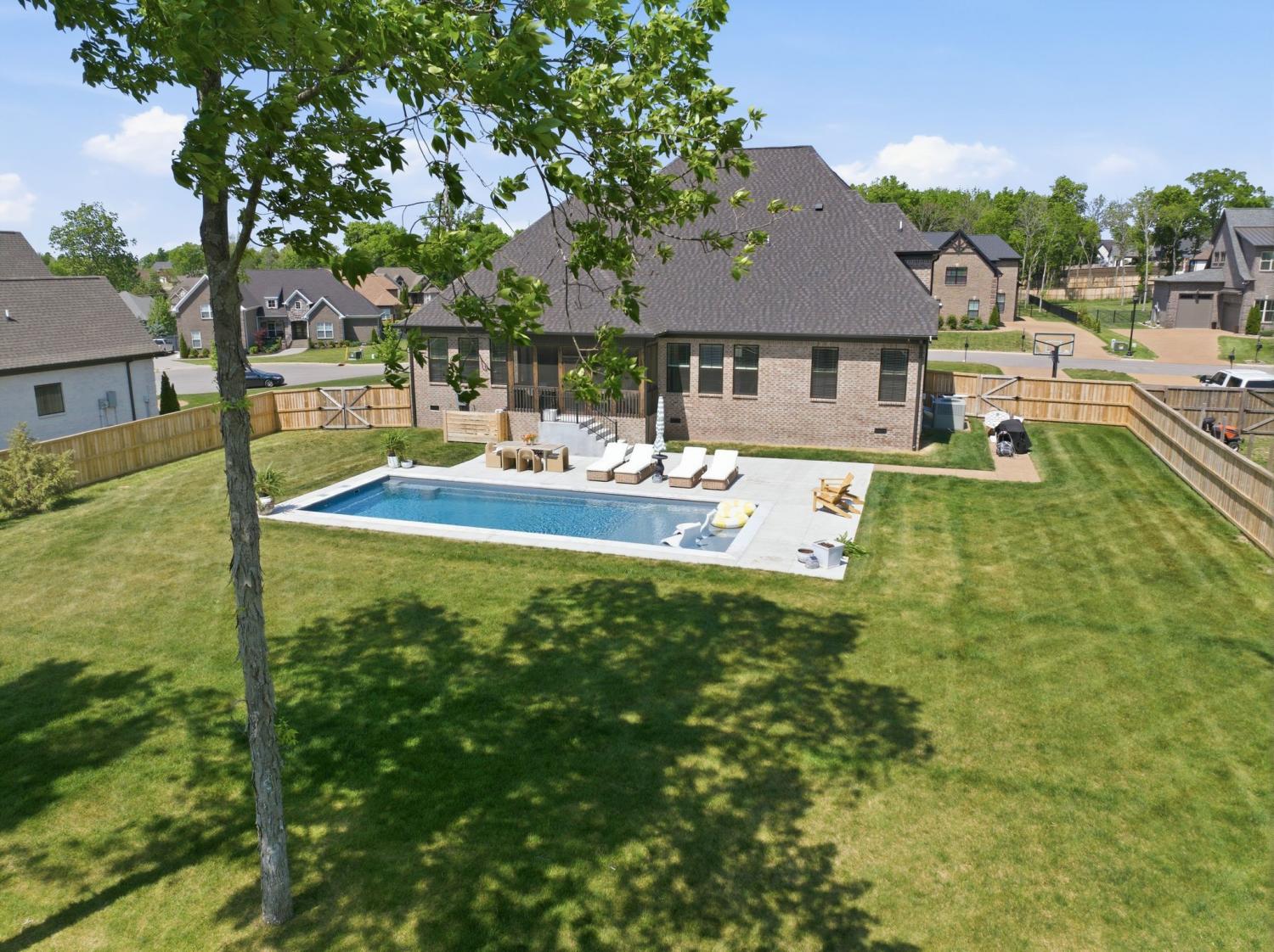Welcome to a home where luxury meets everyday livability! This stunning 4-bedroom, 4.5-bath residence spans an impressive 4,174 square feet and has been thoughtfully designed with both elegance and functionality in mind. From the moment you step inside, you’re greeted by refined finishes, abundant natural light, and a seamless flow ideal for both entertaining and daily life. A dedicated home office offers the perfect space for remote work, while the massive bonus room provides endless possibilities—whether it’s a media room, playroom, or private retreat. The heart of the home extends outdoors to a beautifully designed, low-maintenance fiberglass saltwater in-ground pool—perfect for relaxing summer days without the upkeep. The expansive, sodded yard is enhanced by a Rain Bird irrigation system, keeping your lawn lush and green year-round. Enjoy peaceful mornings or evening gatherings on the screened-in back patio overlooking the luxurious pool, offering comfort and privacy in every season. Inside, you’ll find thoughtful upgrades throughout, including wooden window blinds, extra, easily accessible storage space, and a spacious 3-car garage with sleek epoxy flooring. The home is also equipped with modern conveniences and peace-of-mind features such as an Encore Reveal water softener system and a comprehensive Vivint security system—complete with a doorbell camera, smart front door lock, and exterior cameras covering the side and back of the home. This property perfectly balances luxury, comfort, and smart living—offering everything you need and more in a place you’ll be proud to call home.