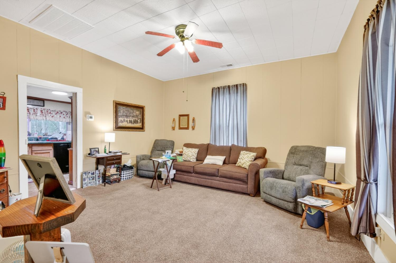 ***Auction Property*** Saturday May 16th at 1PM. Very charming 1900's farmhouse on useable acreage. This 4.3 acres has some fenced area, 2 wells, creek, and 2 mostly enclosed 3 car carports. Each of the carports has an extra enclosed storage area(one of them is in the field and not next to the parking area). The house has large rooms with high ceilings and should be easy to redesign if needed. This acreage is very slightly rolling and matches the surrounding area landscape which is beautiful. The seller has found another home closer to family and is motivated. Mini-farms in the anticipated price range are hard to come by. 10% Buyer's Premium added to the bid. Move-in ready and selling "as is". HVAC only 3 years old. Very nice paved drive and parking pad. The full bath mentioned in the listing is considering the tub/shower are separated form the other bathroom fixtures.