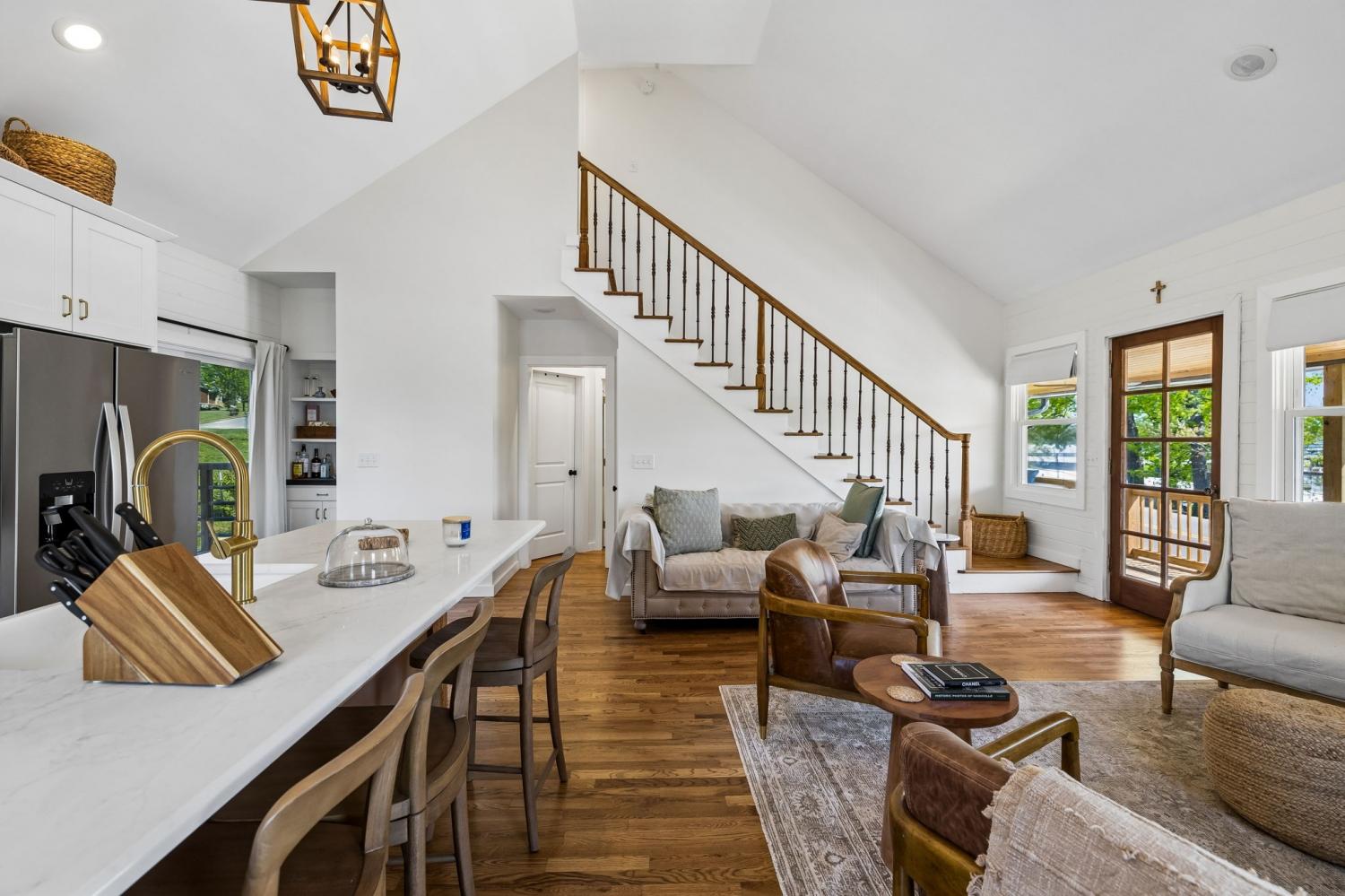 Located steps from the Historic Village of Old Hickory, this completely renovated 3-bedroom, 2-bathroom home features 1,450 sq. ft. of modern living space. The property offers clear lake views and is within walking distance of Blue Turtle Bay Marina and Sam’s Sports Grill. High-end finishes and historic charm define the interior, while massive front and back decks provide ample space for outdoor entertaining. The home includes a partial basement for additional storage and carries the significant advantage of no HOA fees. This turn-key residence combines a prime lakeside location with the freedom of private ownership.