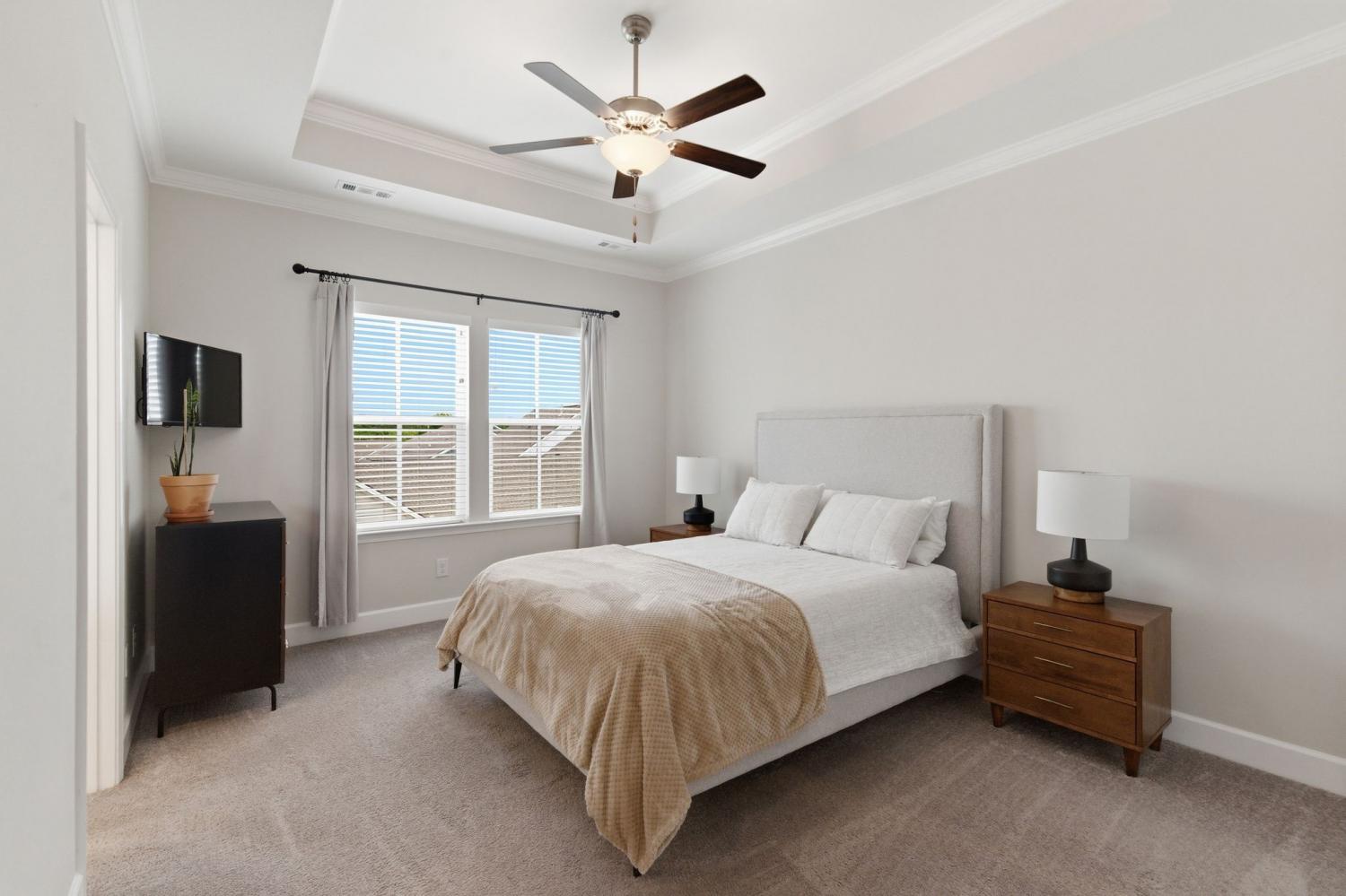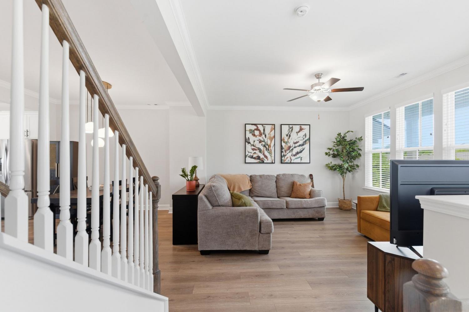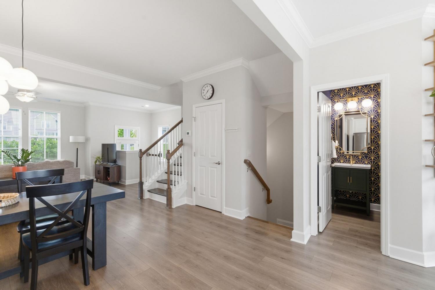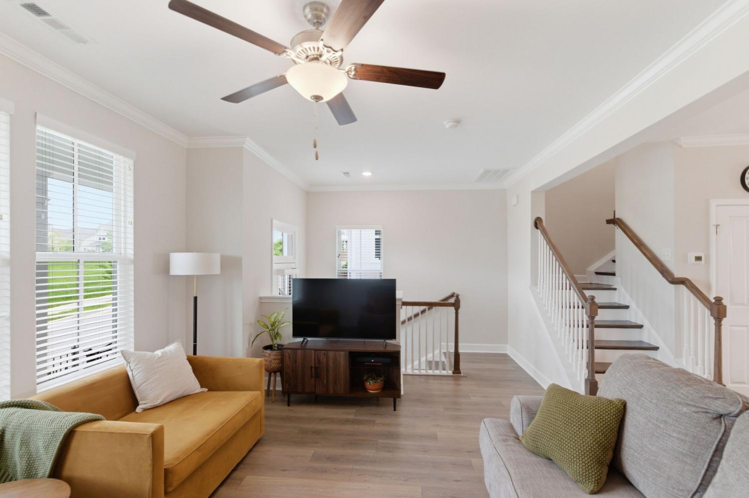 Awesome end-unit townhome in the highly sought-after Carothers Farms community! This move-in ready home offers a spacious, open-concept layout with the living room, dining area, and kitchen seamlessly connected—perfect for both everyday living and entertaining. Durable LVP flooring enhances the main level with style and easy maintenance. The kitchen features beautiful cabinetry, quartz countertops, a large island, and stainless steel appliances—ideal for gatherings. The generous primary suite is a true retreat, complete with a garden tub, tile shower, and two closets. One secondary bedroom includes attractive built-ins, perfect for a home office, guest space, or added storage. The finished basement boasts a large rec room with rough-in plumbing already in place, giving you the option to easily add another bathroom. A spacious two-car garage adds convenience and functionality. Enjoy all that Carothers Farms has to offer, including walking trails, a dog park, community garden, and a charming on-site coffee/bread shop. An incredible opportunity in a fantastic location—don’t miss it! HOA also includes internet!!