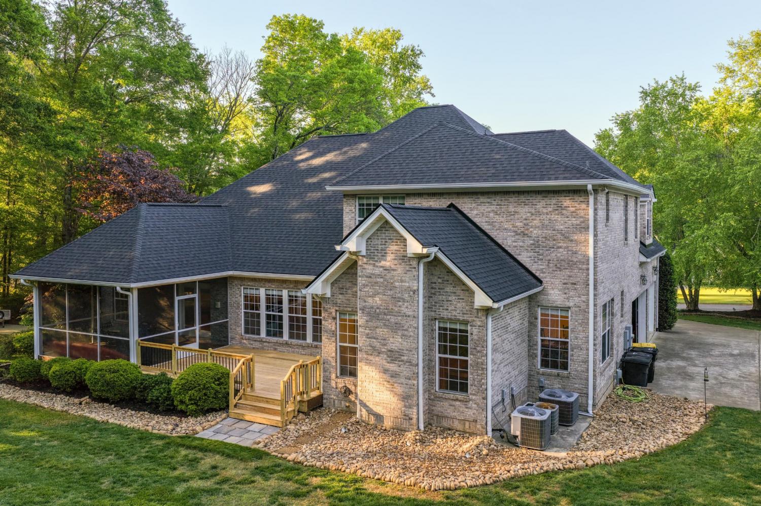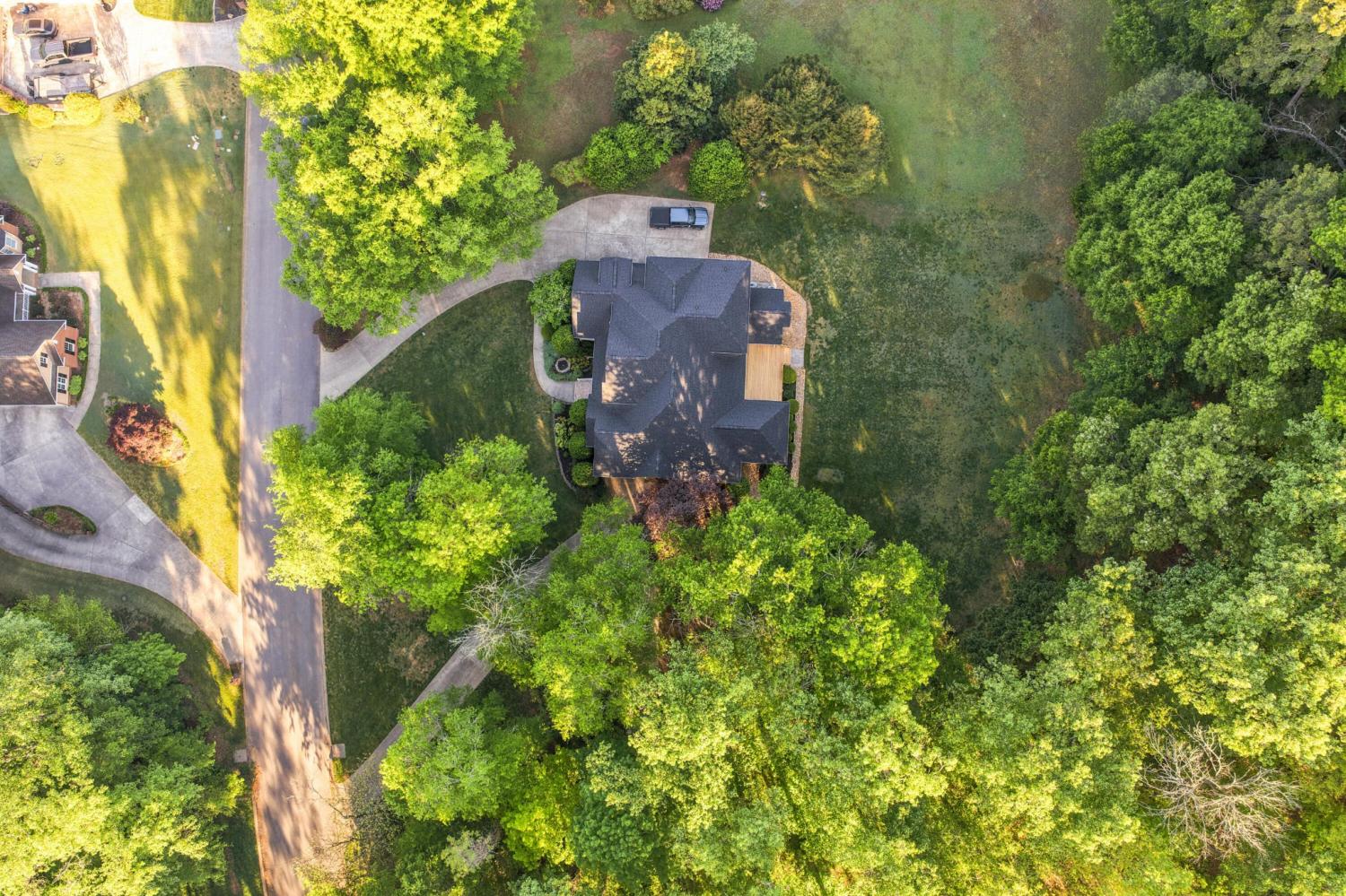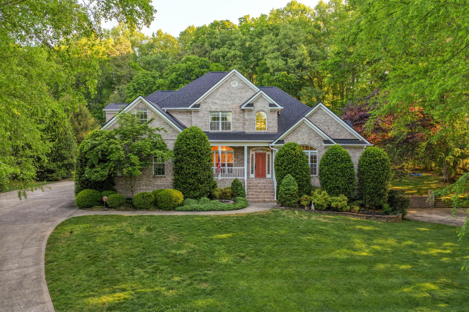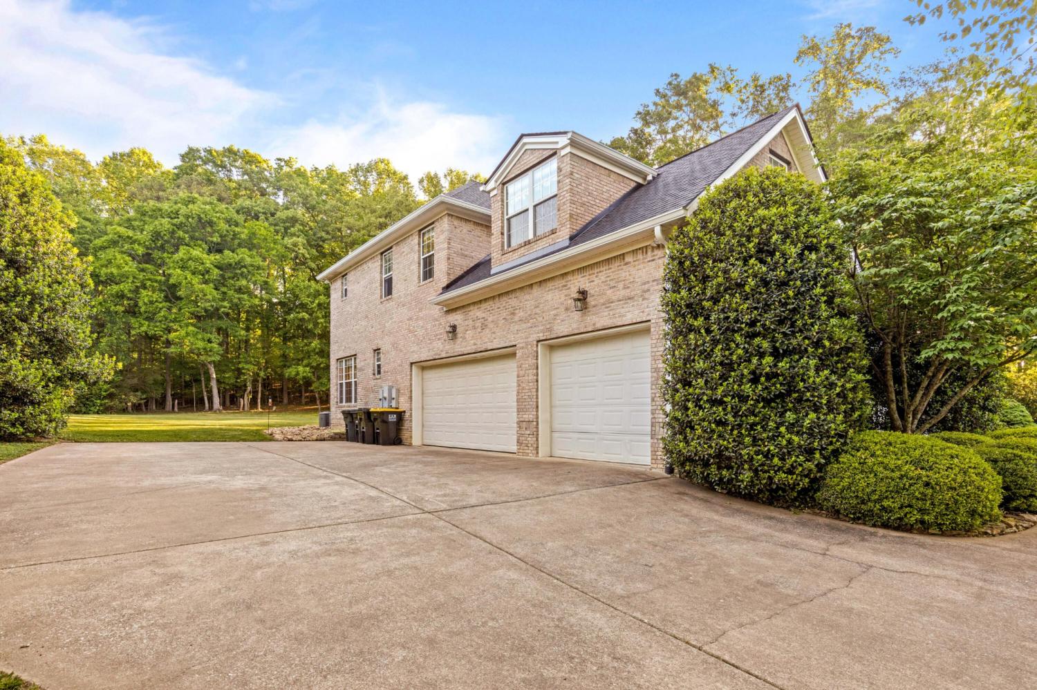 Tucked away on 1.72 acres in a quiet cul-de-sac, this exceptional all-brick estate offers a rare blend of privacy, space, and natural beauty. With nearly 5,000 square feet, 5 bedrooms, and 5 full baths, this home is thoughtfully designed for both refined living and comfortable everyday life. A welcoming front porch opens to a light-filled interior featuring soaring ceilings, rich hardwood floors, and well-defined living spaces that create both warmth and functionality. The great room, anchored by a fireplace and custom built-ins, flows seamlessly into the kitchen and dining areas--perfect for gathering and entertaining. The main-level primary suite serves as a private retreat, complete with a sitting area, direct access to the screened porch and deck, and a spa-like bath with double vanities, jetted tub, tiled shower, and a spacious walk-in closet. A dedicated office on the main level adds convenience for work or study. Upstairs, generously sized bedrooms and flexible living areas--including a Jack-and-Jill layout and bonus space--offer room for family and guests. The finished basement expands the home's versatility with a private entrance, additional garage, and large entertaining spaces ideal for recreation or multi-generational living. An encapsulated crawlspace, accessible from the basement, provides added storage and peace of mind. Outdoor living is equally inviting, with a spacious deck and screened porch overlooking the serene, wooded setting filled with wildlife. Enjoy access to Wolftever Creek, perfect for kayaking, canoeing, or simply enjoying the natural surroundings. Additional highlights include dual driveways for ample parking, and a setting that offers both seclusion and convenience. A truly special property offering space, comfort, and timeless appeal.