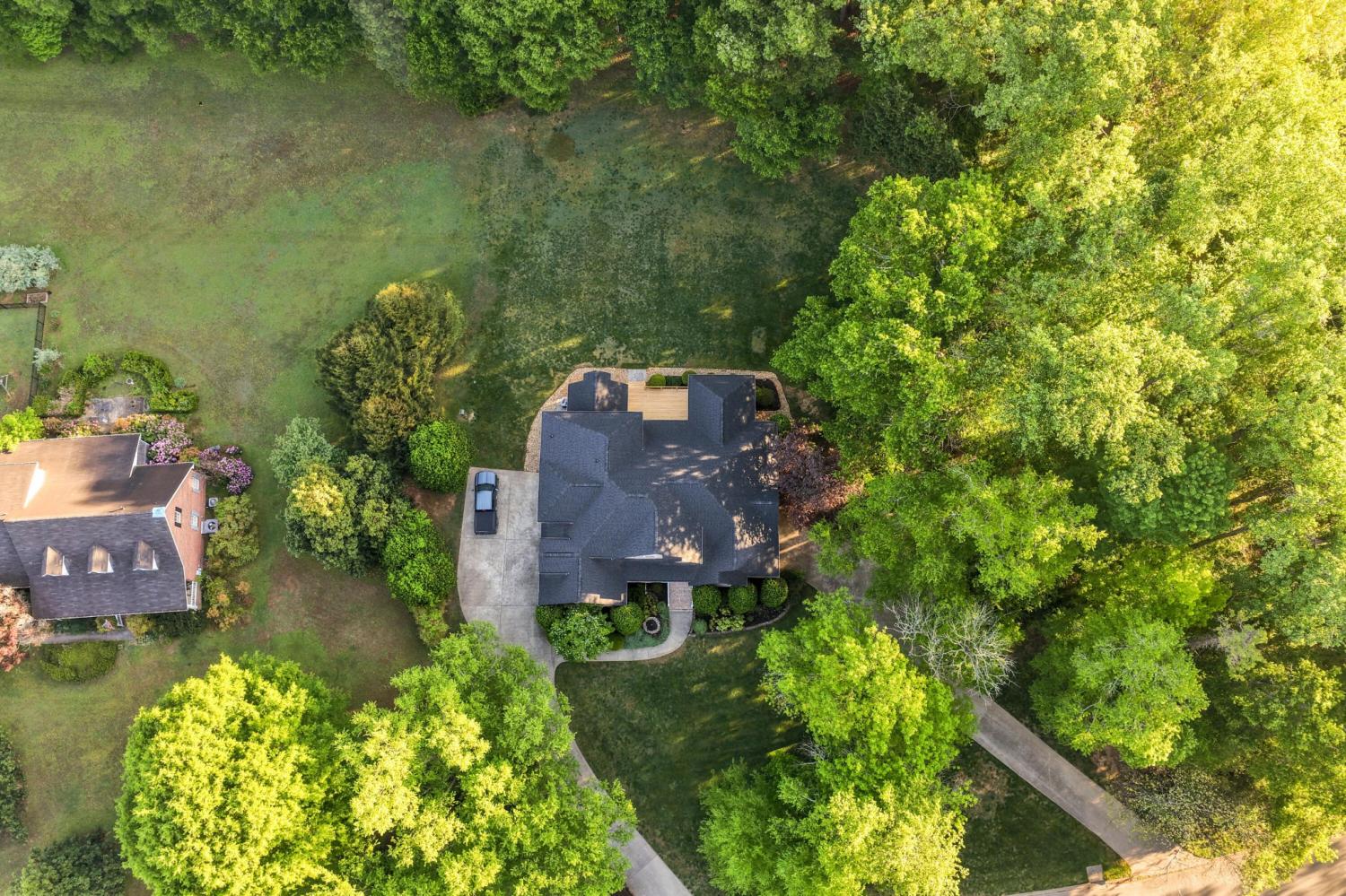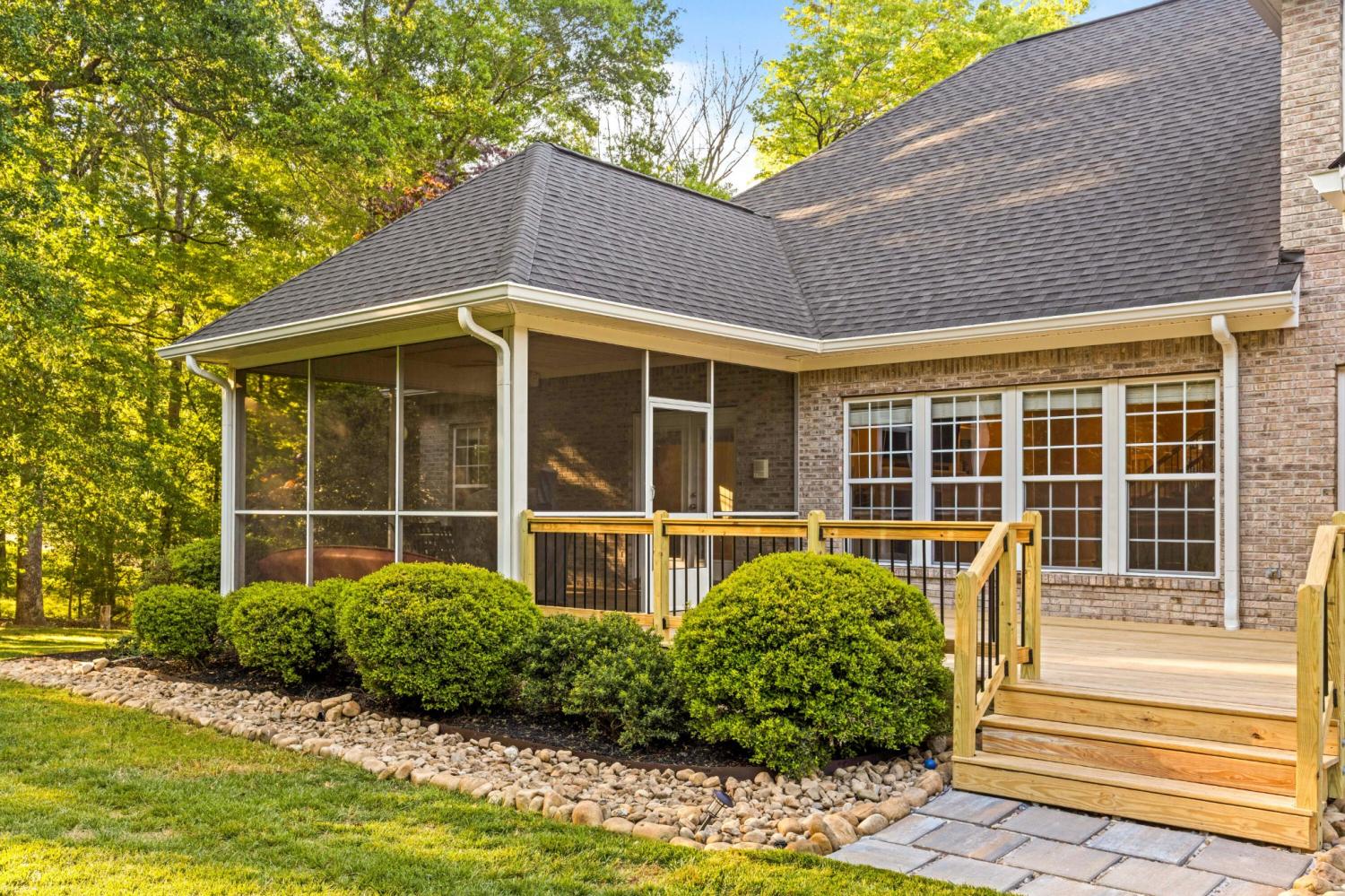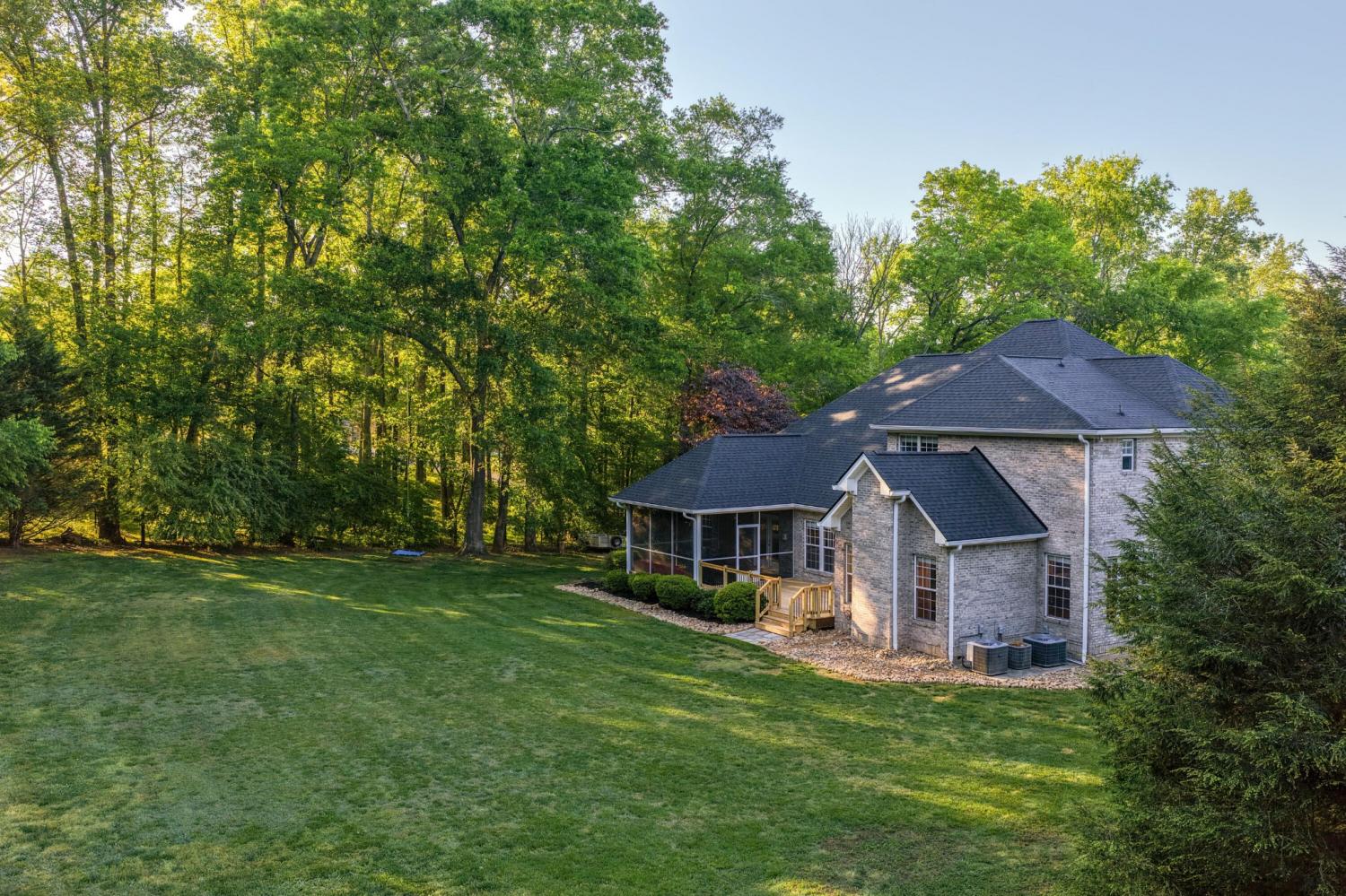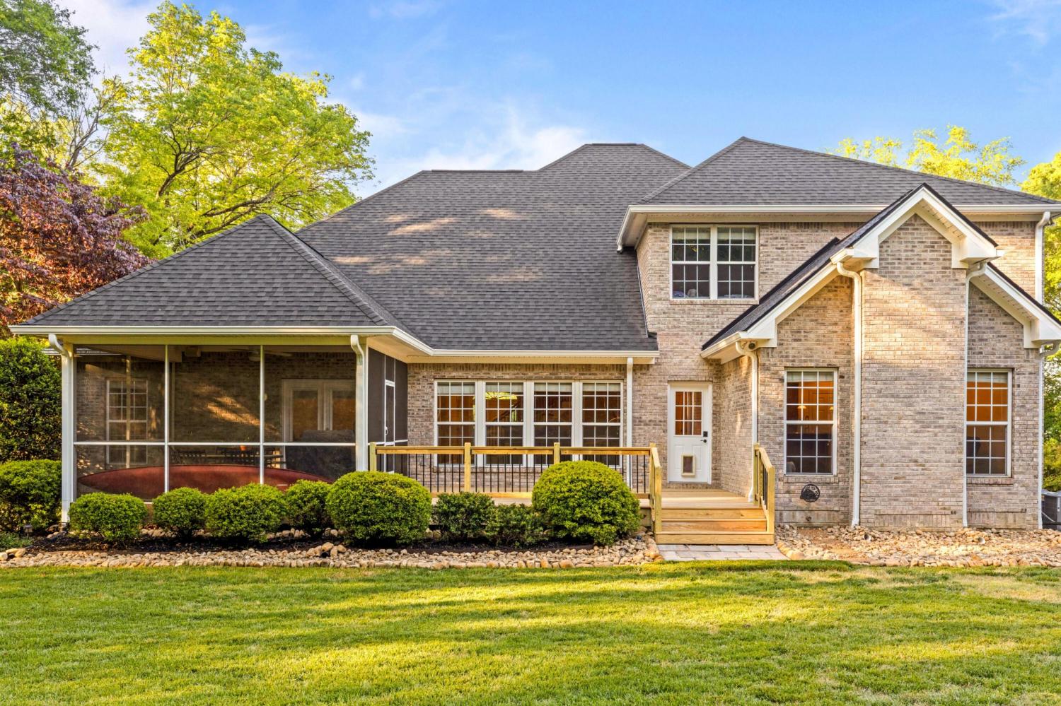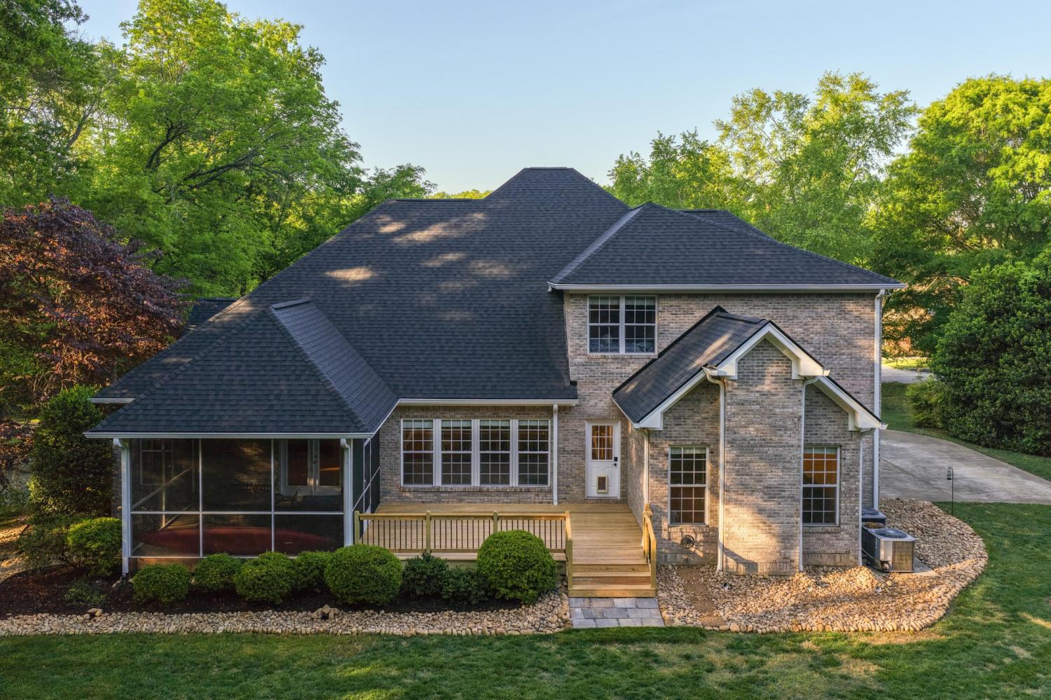Tucked away on 1.72 acres in a quiet cul-de-sac, this exceptional all-brick estate offers a rare blend of privacy, space, and natural beauty. With nearly 5,000 square feet, 5 bedrooms, and 5 full baths, this home is thoughtfully designed for both refined living and comfortable everyday life. A welcoming front porch opens to a light-filled interior featuring soaring ceilings, rich hardwood floors, and well-defined living spaces that create both warmth and functionality. The great room, anchored by a fireplace and custom built-ins, flows seamlessly into the kitchen and dining areas--perfect for gathering and entertaining. The main-level primary suite serves as a private retreat, complete with a sitting area, direct access to the screened porch and deck, and a spa-like bath with double vanities, jetted tub, tiled shower, and a spacious walk-in closet. A dedicated office on the main level adds convenience for work or study. Upstairs, generously sized bedrooms and flexible living areas--including a Jack-and-Jill layout and bonus space--offer room for family and guests. The finished basement expands the home's versatility with a private entrance, additional garage, and large entertaining spaces ideal for recreation or multi-generational living. An encapsulated crawlspace, accessible from the basement, provides added storage and peace of mind. Outdoor living is equally inviting, with a spacious deck and screened porch overlooking the serene, wooded setting filled with wildlife. Enjoy access to Wolftever Creek, perfect for kayaking, canoeing, or simply enjoying the natural surroundings. Additional highlights include dual driveways for ample parking, and a setting that offers both seclusion and convenience. A truly special property offering space, comfort, and timeless appeal.