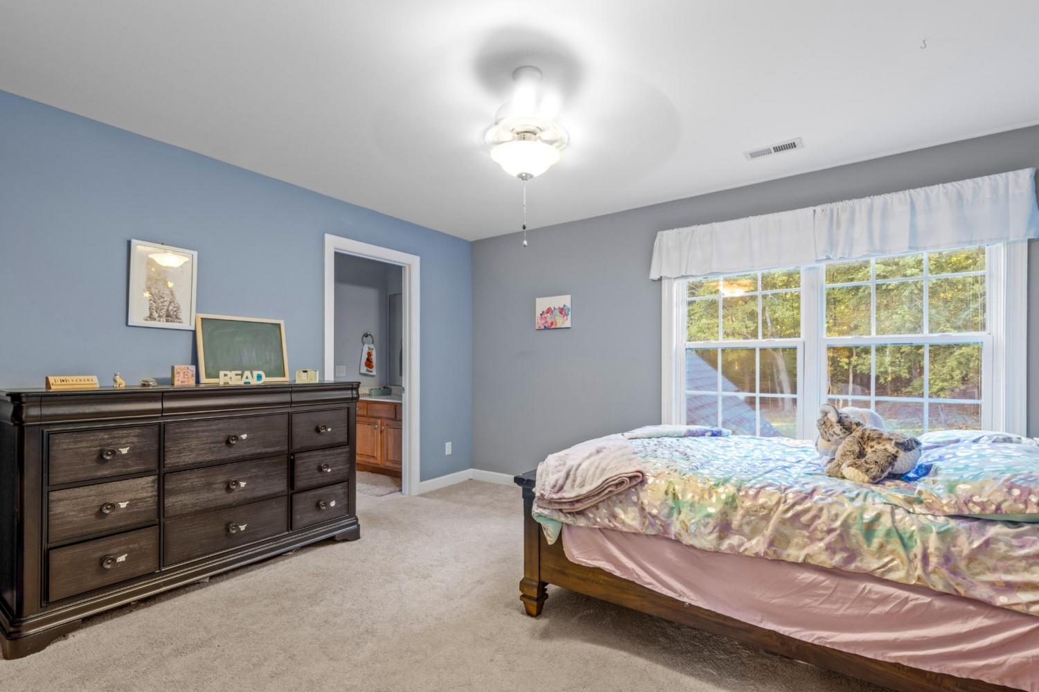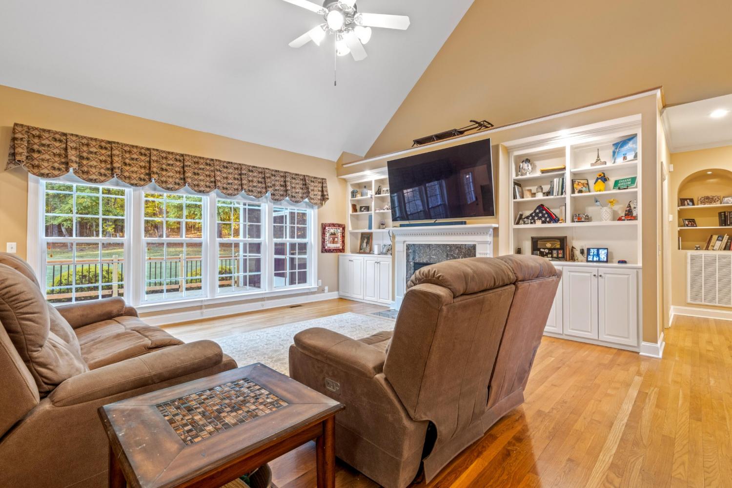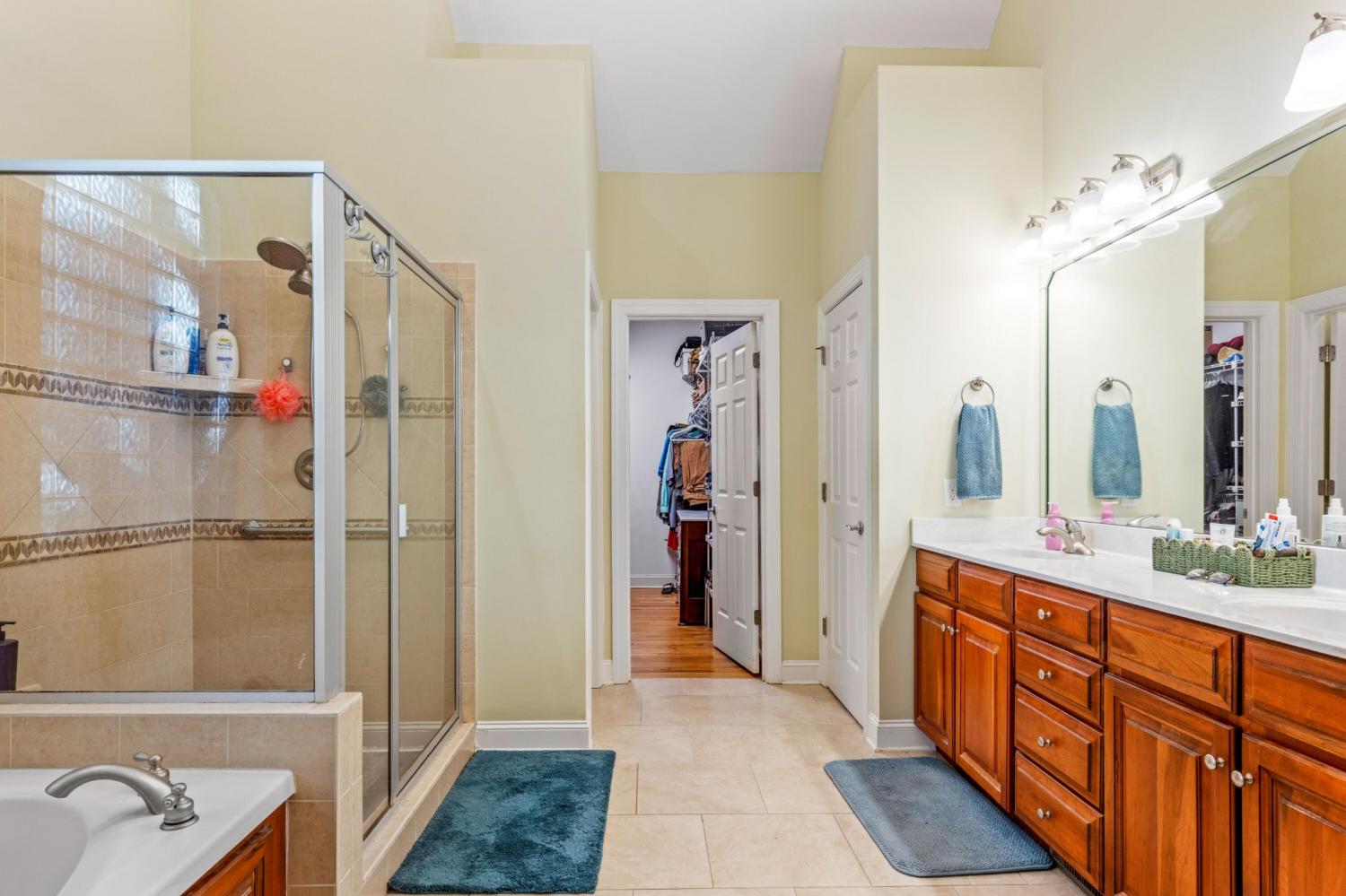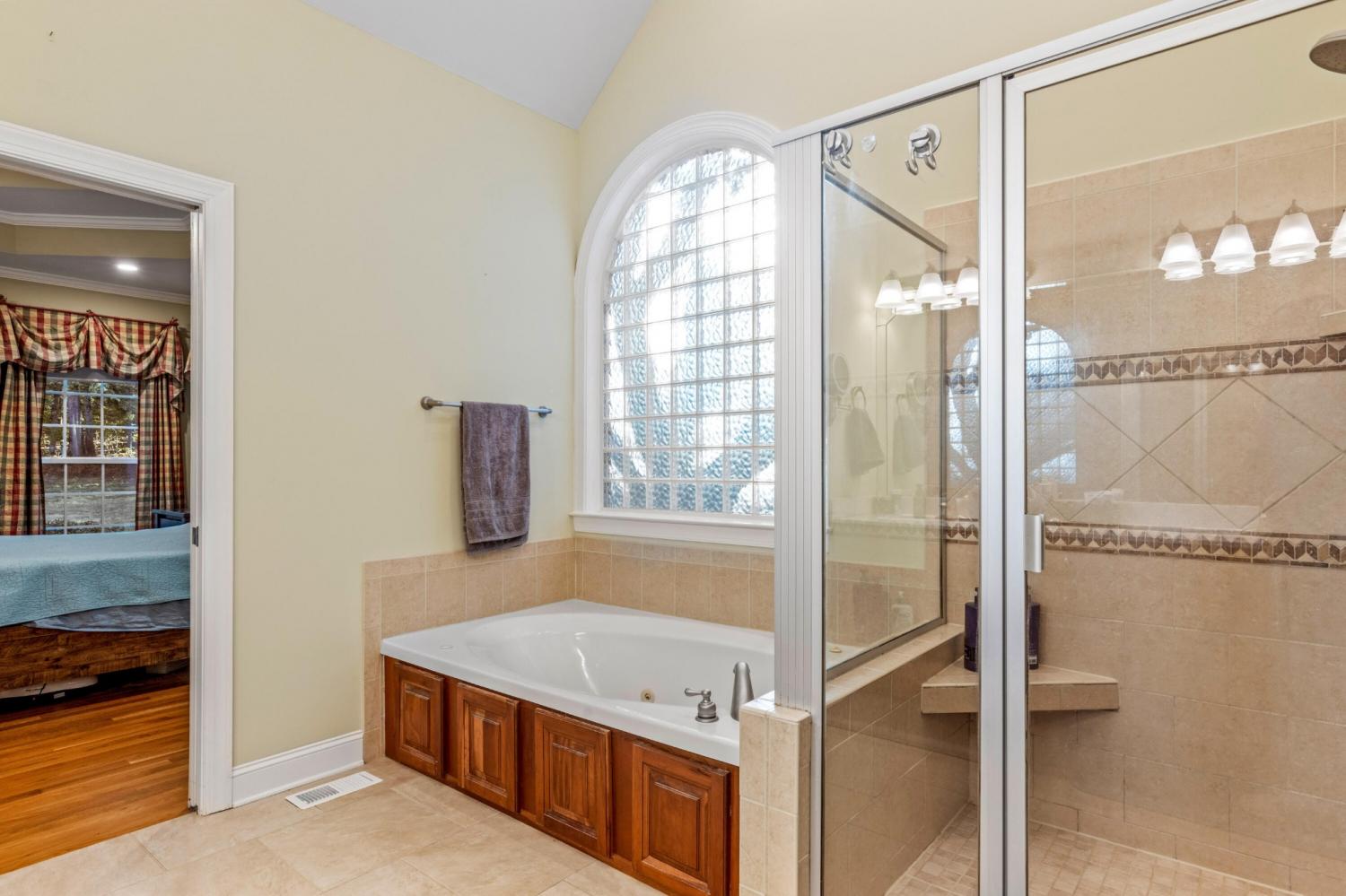 Tucked away on 1.72 acres in a quiet cul-de-sac, this exceptional all-brick estate offers a rare blend of privacy, space, and natural beauty. With nearly 5,000 square feet, 5 bedrooms, and 5 full baths, this home is thoughtfully designed for both refined living and comfortable everyday life. A welcoming front porch opens to a light-filled interior featuring soaring ceilings, rich hardwood floors, and well-defined living spaces that create both warmth and functionality. The great room, anchored by a fireplace and custom built-ins, flows seamlessly into the kitchen and dining areas--perfect for gathering and entertaining. The main-level primary suite serves as a private retreat, complete with a sitting area, direct access to the screened porch and deck, and a spa-like bath with double vanities, jetted tub, tiled shower, and a spacious walk-in closet. A dedicated office on the main level adds convenience for work or study. Upstairs, generously sized bedrooms and flexible living areas--including a Jack-and-Jill layout and bonus space--offer room for family and guests. The finished basement expands the home's versatility with a private entrance, additional garage, and large entertaining spaces ideal for recreation or multi-generational living. An encapsulated crawlspace, accessible from the basement, provides added storage and peace of mind. Outdoor living is equally inviting, with a spacious deck and screened porch overlooking the serene, wooded setting filled with wildlife. Enjoy access to Wolftever Creek, perfect for kayaking, canoeing, or simply enjoying the natural surroundings. Additional highlights include dual driveways for ample parking, and a setting that offers both seclusion and convenience. A truly special property offering space, comfort, and timeless appeal.