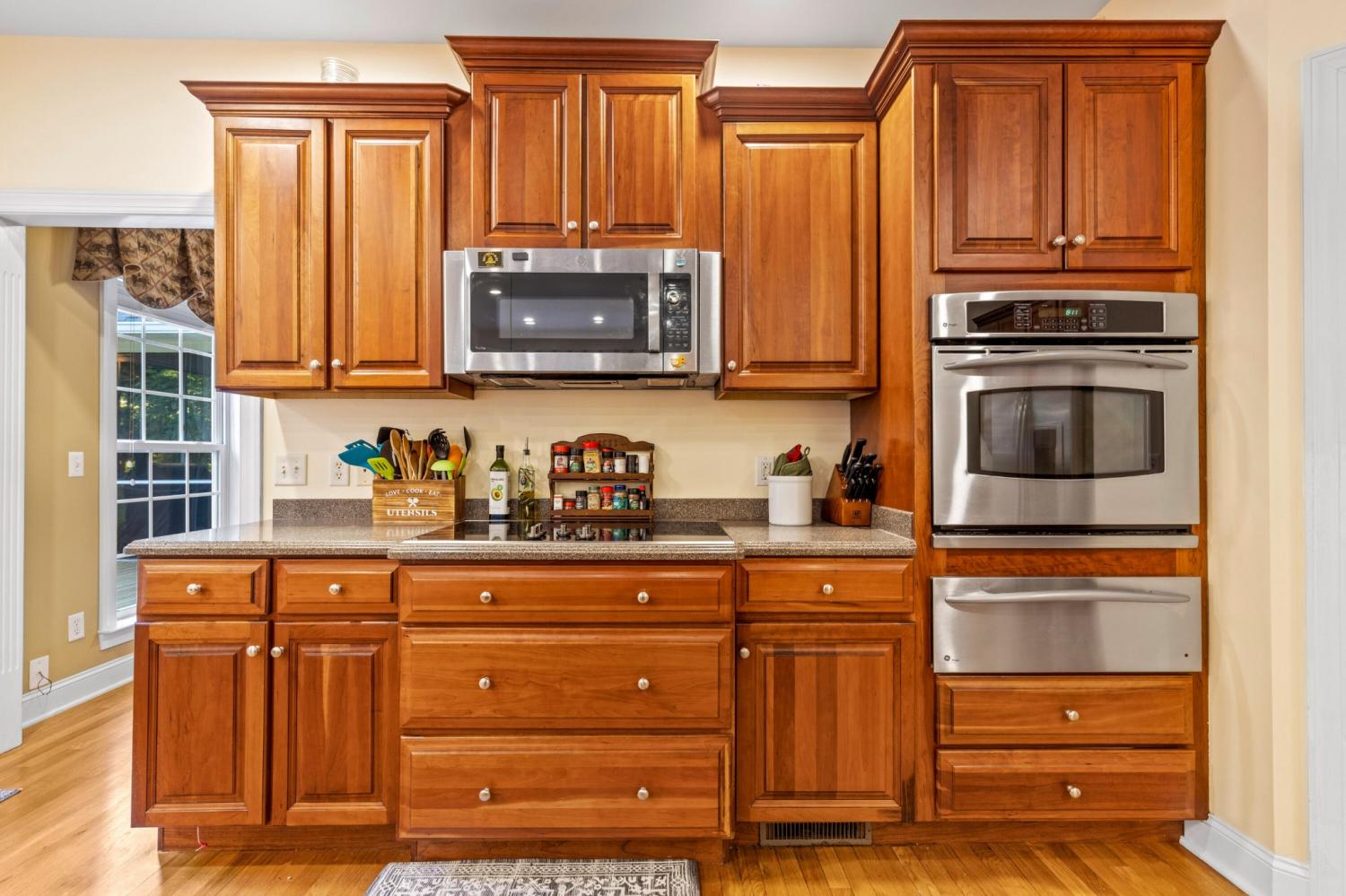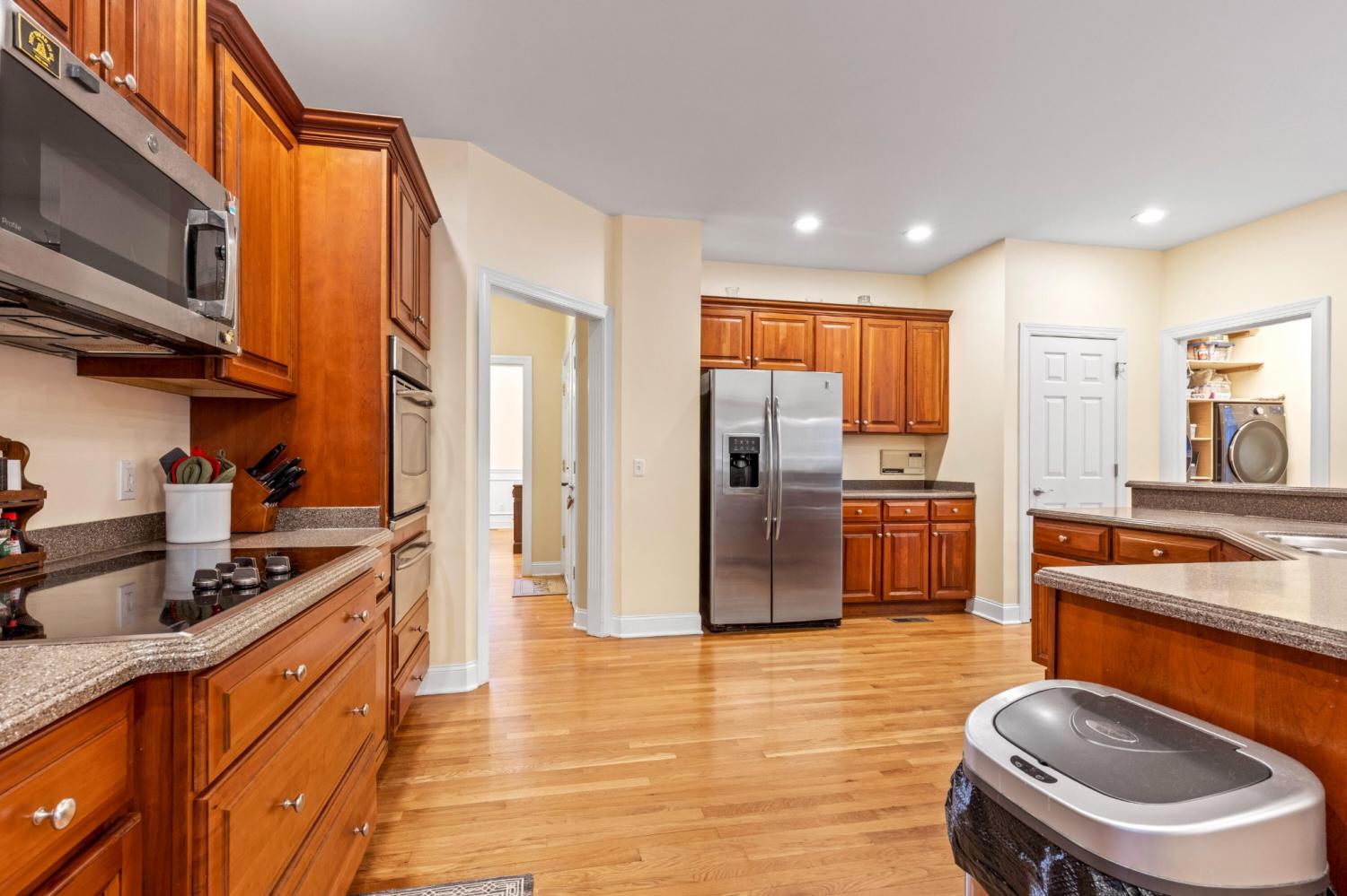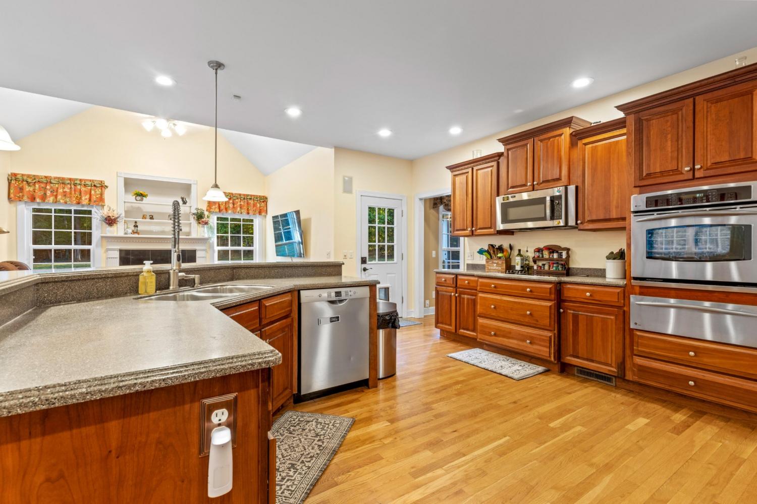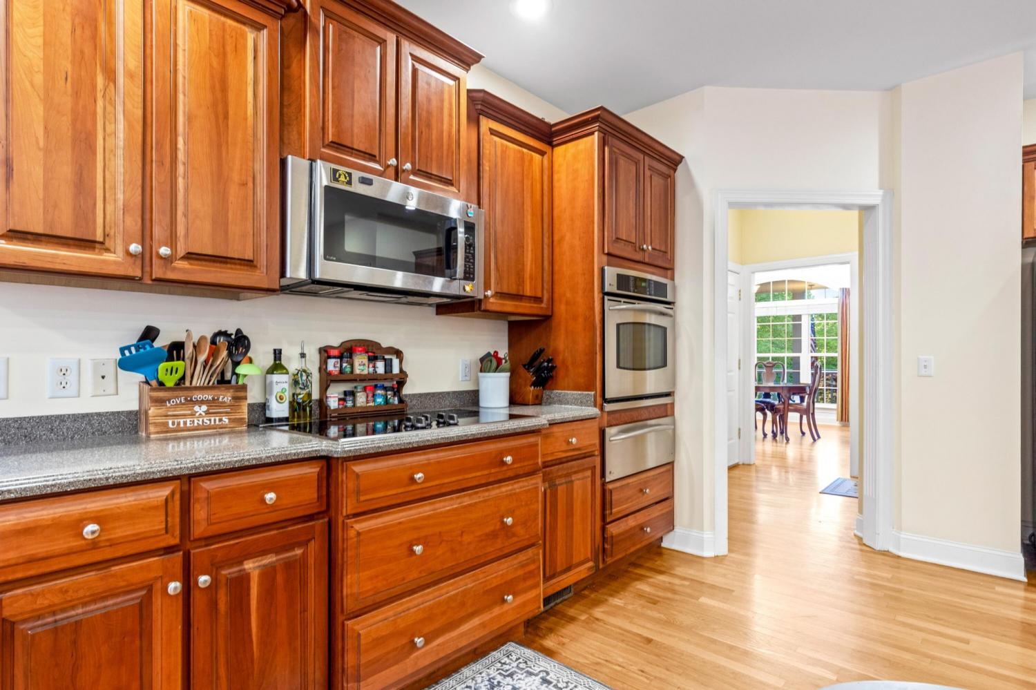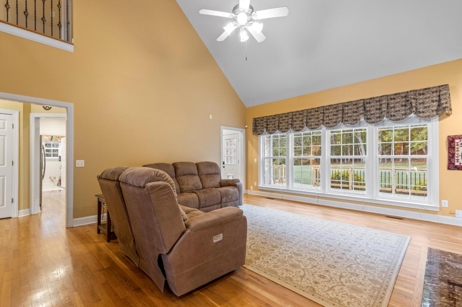 Tucked away on 1.72 acres in a quiet cul-de-sac, this exceptional all-brick estate offers a rare blend of privacy, space, and natural beauty. With nearly 5,000 square feet, 5 bedrooms, and 5 full baths, this home is thoughtfully designed for both refined living and comfortable everyday life. A welcoming front porch opens to a light-filled interior featuring soaring ceilings, rich hardwood floors, and well-defined living spaces that create both warmth and functionality. The great room, anchored by a fireplace and custom built-ins, flows seamlessly into the kitchen and dining areas--perfect for gathering and entertaining. The main-level primary suite serves as a private retreat, complete with a sitting area, direct access to the screened porch and deck, and a spa-like bath with double vanities, jetted tub, tiled shower, and a spacious walk-in closet. A dedicated office on the main level adds convenience for work or study. Upstairs, generously sized bedrooms and flexible living areas--including a Jack-and-Jill layout and bonus space--offer room for family and guests. The finished basement expands the home's versatility with a private entrance, additional garage, and large entertaining spaces ideal for recreation or multi-generational living. An encapsulated crawlspace, accessible from the basement, provides added storage and peace of mind. Outdoor living is equally inviting, with a spacious deck and screened porch overlooking the serene, wooded setting filled with wildlife. Enjoy access to Wolftever Creek, perfect for kayaking, canoeing, or simply enjoying the natural surroundings. Additional highlights include dual driveways for ample parking, and a setting that offers both seclusion and convenience. A truly special property offering space, comfort, and timeless appeal.