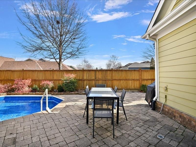 Tucked inside Providence’s most exclusive gated community, this meticulously kept corner‑lot home shines with luxury upgrades throughout. Wraparound porches with ceiling fans and HOA‑maintained landscaping create easy living, while inside, warm hardwood floors and an upgraded staircase lead to flexible living and dining spaces with custom built‑ins. Transom windows brighten the first floor, and the open kitchen boasts a marble‑look backsplash, quartz counters, and high‑end stainless appliances including a gas cooktop, double ovens, a microwave drawer, and a vented hood. A charming breakfast nook with wainscoting flows into a bright living room with lighted built‑ins, a gas fireplace, and views of the courtyard and private pool. The graceful powder room features a furniture‑style vanity, glass bowl sink, and waterfall faucet. The laundry room offers calm cabinetry, natural light, and a folding shelf. A whole‑house central vacuum adds convenience. The main‑level primary ensuite includes hardwood floors, crown trim, a walk‑in closet, and a spacious bath with double vanities, granite, a walk‑in shower, and a jetted tub. Upstairs, a bonus room opens to the wraparound porch, joined by two airy bedrooms and a full bath with double sinks. Another large bonus room over the garage includes its own half bath, tall ceilings, sunlight, and generous storage—ideal for multi‑generational living. Outside, enjoy the peaceful courtyard with a covered patio, lush landscaping, and a sparkling saltwater pool with new lining, motor, and salt cell. The oversized rear garage offers more storage plus a gas tankless water heater and water softener. Community perks include multiple pools with slides, a clubhouse with a kitchenette, and a gated playground. A 1% lender incentive can be used towards closing costs and/or rate buy down.