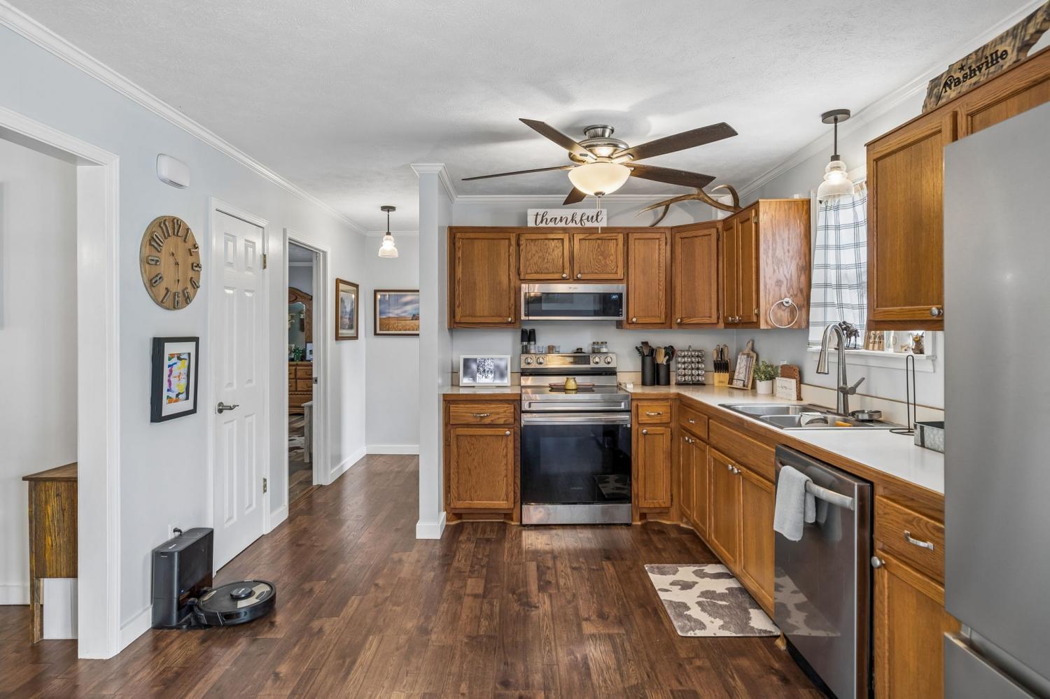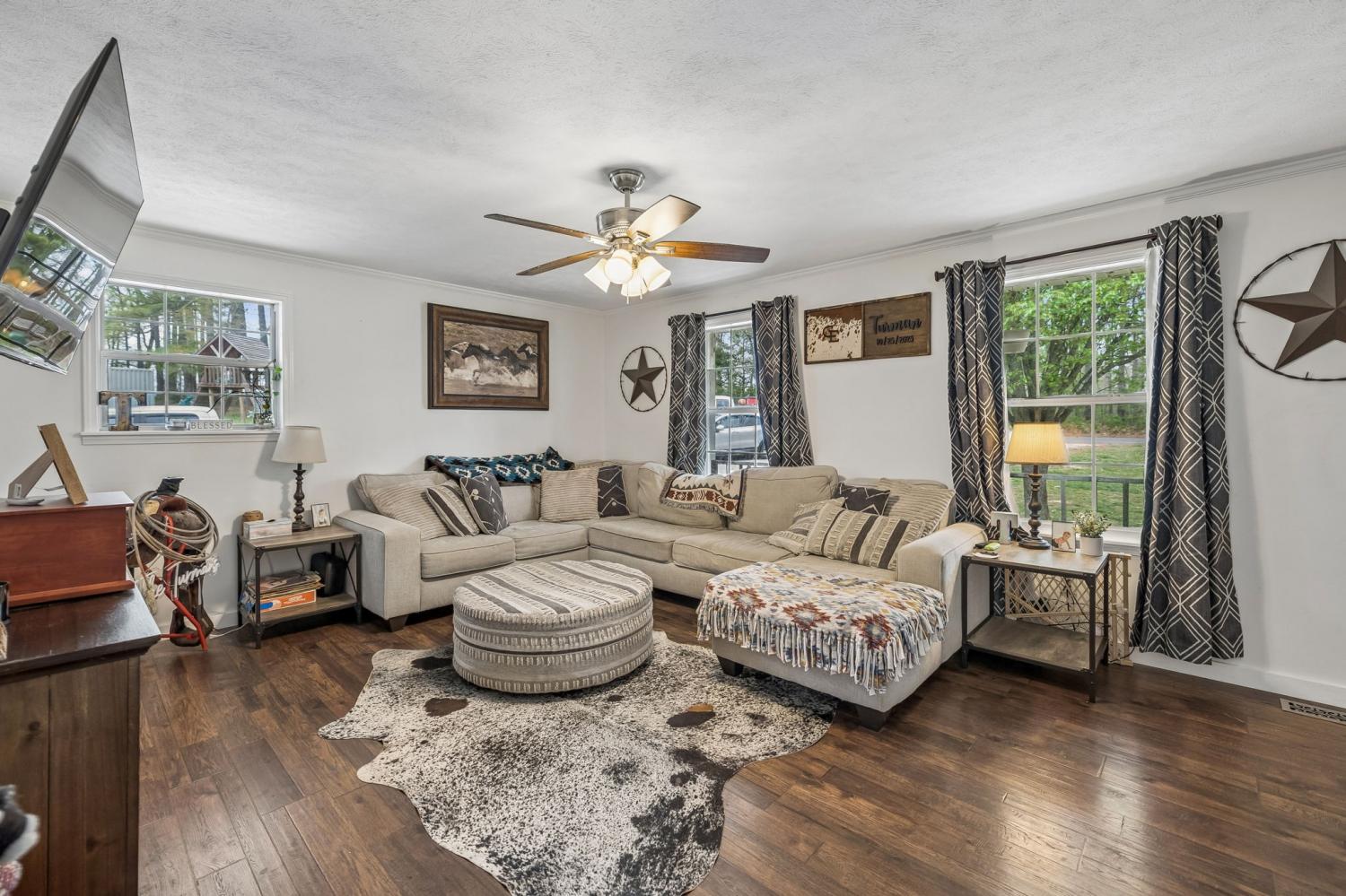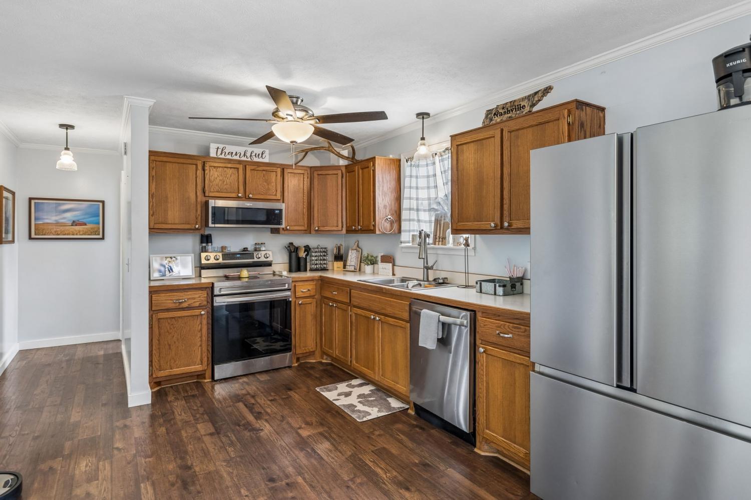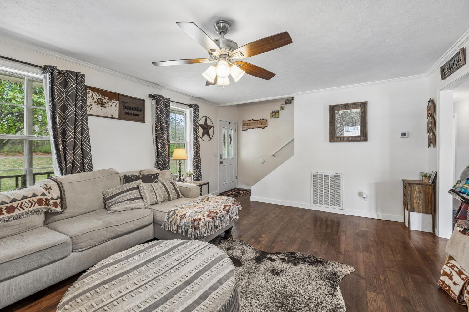 Charming home featuring a welcoming wrap-around porch and a spacious layout with 3 bedrooms and 2.5 baths. The main living area offers an open flow from the living room to the kitchen and out to the back deck—perfect for entertaining. The primary bedroom is conveniently located on the main level, with a large mudroom accessible from the covered front porch. Recent updates include newer paint in select rooms, updated front porch railings, and a brand-new upstairs split unit with a 5-year parts warranty. The fully fenced backyard provides privacy and includes a storage shed that will convey. Enjoy high-speed internet availability and a prime location just minutes from local schools, with easy access to I-40 and I-840 for a quick commute to Nashville or Franklin, and only 30 minutes to Columbia. This home also offers abundant storage throughout.