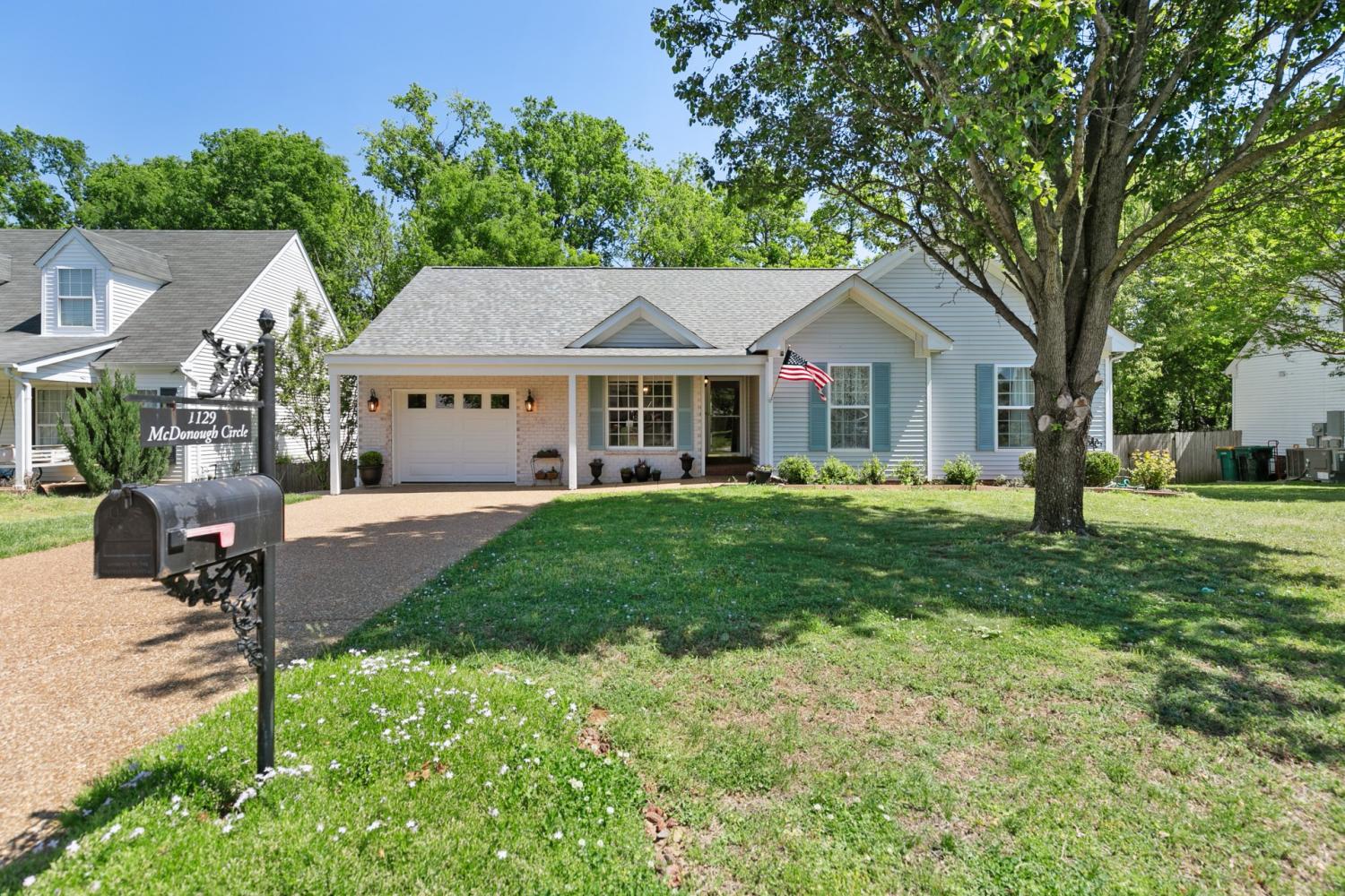This charming single-family home located at 1129 McDonough Cir in Thompson's Station, TN was built in 2002. It offers 2 bathrooms, a total of 1,300 sq.ft. of finished living space and sits on a spacious lot size of 7,920 sq.ft. Perfect for a small family or first-time home buyers, this property provides a cozy and inviting atmosphere with plenty of room for outdoor activities. Don't miss out on this wonderful opportunity to make this house your home! This home has just added a garage with a concrete block ''SAFEROOM" built to FEMA Certifications (by Owner-General Contractor) 6x8 permitted and inspected. We are also offering Owner - Financing at a competive rate.