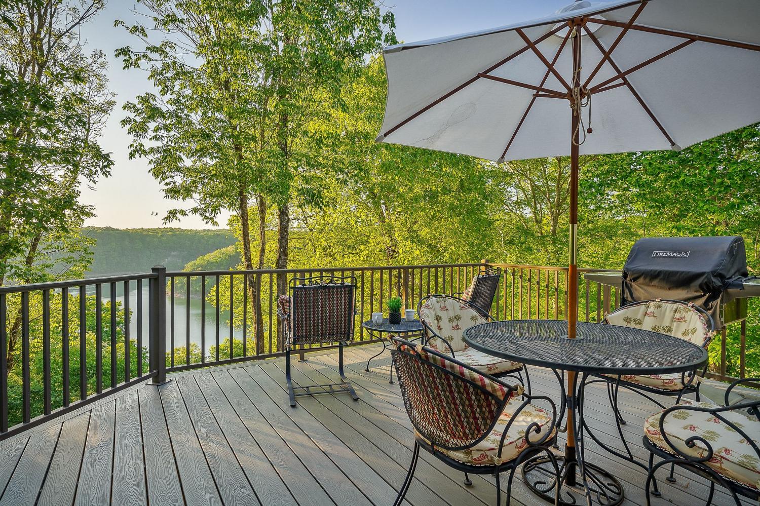 Escape to Center Hill in this exceptional custom-built lake home just 0.7 mile from boat launch and water access. With expansive lake views, designer finishes, and a thoughtfully designed floorplan, this beautifully maintained 3 bedroom, 4.5 bath home offers luxury, comfort, and function. The primary suite features a spa-inspired bathroom, while each additional bedroom includes its own private ensuite. The designer kitchen is appointed with a Sub-Zero refrigerator and elevated finishes, and the living room fireplace adds warmth and style to the main gathering space. Outdoor living is a standout with two covered porches, both with fireplaces, including a 16x50 screened porch, plus an open deck positioned to enjoy the view. An expansive media/recreation room provides outstanding space for entertaining, and the main level 2-car garage is complemented by an oversized basement garage with room for large boats, lake toys, and equipment. Concrete driveways, abundant parking, excellent condition, and quality craftsmanship throughout make this a unique Center Hill Lake offering. A rare private boat dock is also available for purchase separately (MLS 3164592).