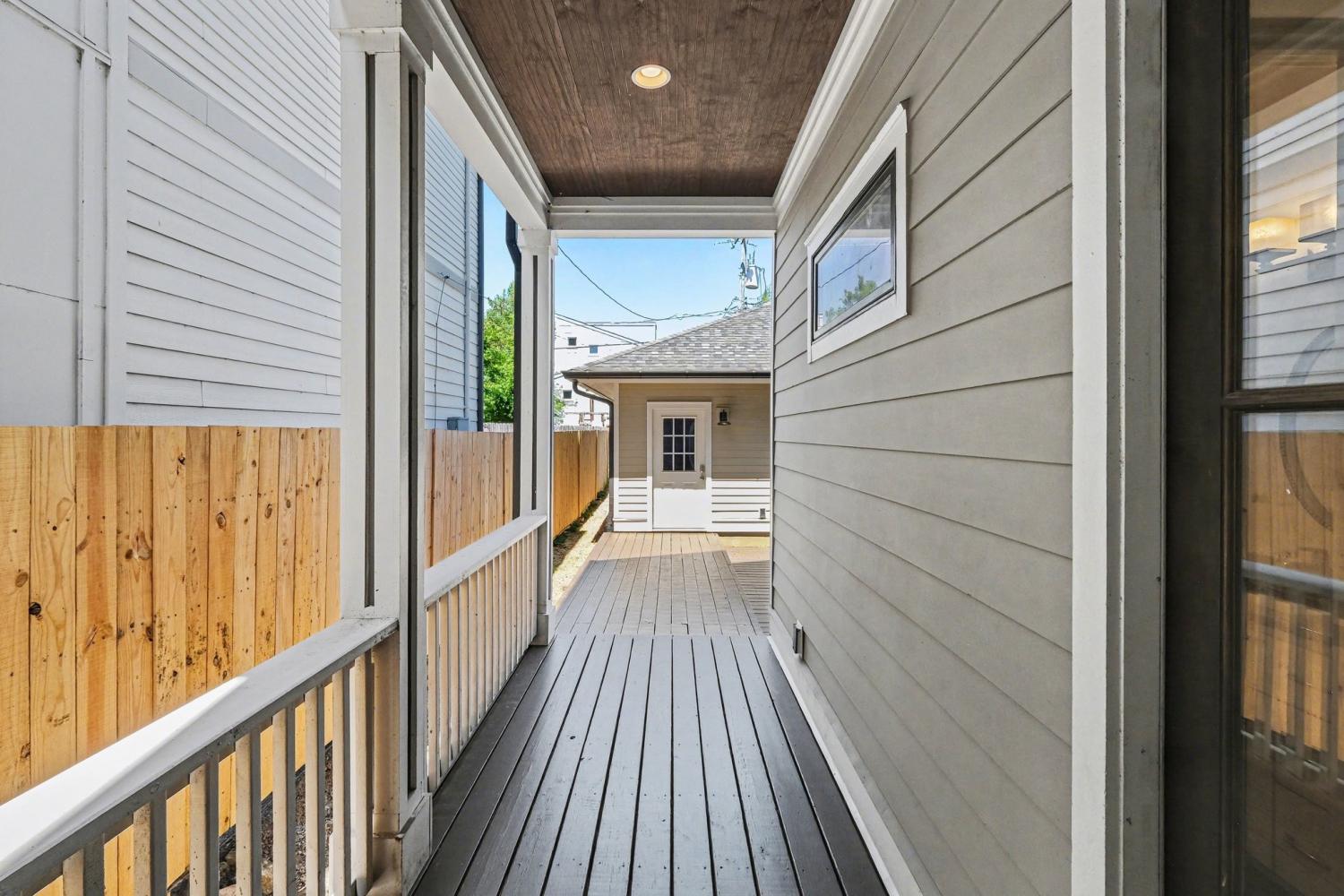 Beautifully crafted by Pantheon Development, this 4 bedroom, 3 bath home offers an exceptional blend of style, comfort, and functionality in a prime Nashville location. Spanning nearly 2,400 square feet across two stories, the thoughtfully designed layout includes a dedicated office and inviting living spaces enhanced by vaulted ceilings and abundant natural light. The spacious primary suite features a well appointed bathroom with updated finishes, including a large walk in shower with a built in bench for added comfort. Outdoor living is just as impressive, with expansive front, rear, and upstairs porches, along with a private courtyard that creates the perfect setting for relaxing or entertaining. The rear deck is equipped with a hot tub hookup and power, making it ready for a future spa addition. A detached two car garage with rear alley access adds convenience while maintaining curb appeal. With no HOA and a desirable location close to everything Nashville has to offer, this home presents a rare opportunity to enjoy both quality construction and everyday livability.