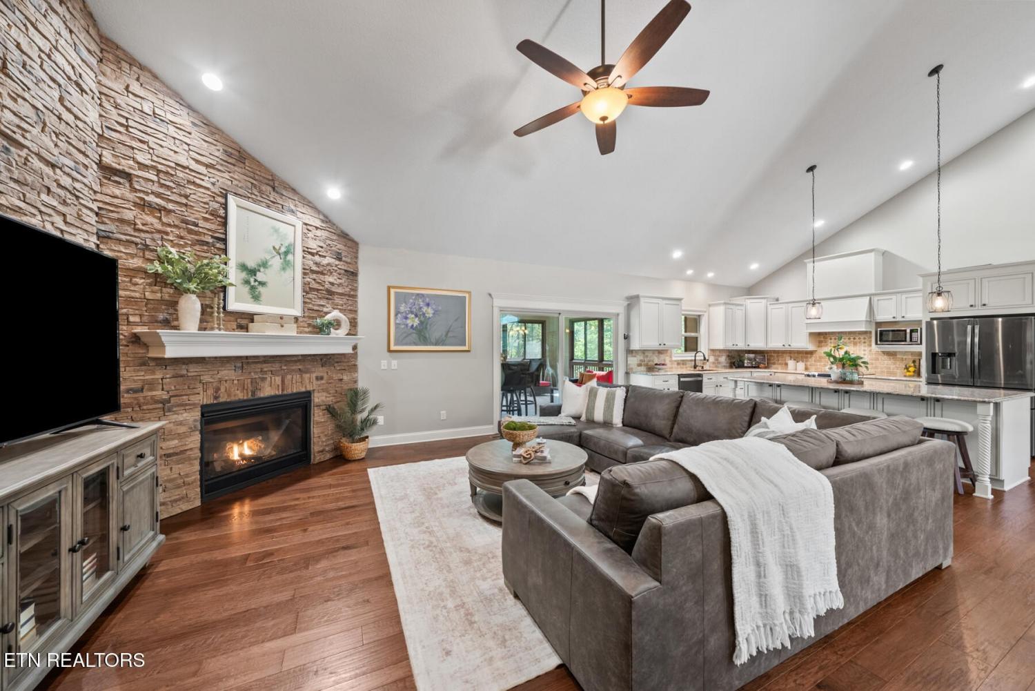 Welcome to this exceptional custom-built home located on the #4 tee of the Brae Golf Course in Fairfield Glade, nestled within one of the area's most prestigious neighborhoods. Built by one of the region's premier builders, this beautifully crafted 3-bedroom, 2-bath residence offers 2,275 square feet of thoughtfully designed living space on a spacious 0.68-acre lot. From the moment you enter, you'll appreciate the attention to detail and upscale finishes throughout. The formal dining area features stunning coffered ceilings, setting the tone for elegant entertaining. The open-concept living space is anchored by a striking stone fireplace with gas logs, creating a warm and inviting atmosphere. The kitchen is both functional and stylish, complete with ample cabinetry, granite countertops, and a large island perfect for gathering. The primary suite is a true retreat, highlighted by an oversized bathroom featuring a unique octagon walk-in shower, dual vanities, and generous storage. Additional bedrooms provide flexibility for guests, office space, or hobbies. Step outside to enjoy the serene back porch, designed for year-round relaxation with slider windows on both the top and bottom - perfect for taking in the peaceful surroundings and golf course views. This home is as practical as it is beautiful, with numerous upgrades and maintenance features: New HVAC system (electric heat & air), encapsulated crawlspace with humidifier and dehumidifier, 250-gallon buried propane tank servicing the fireplace, irrigation system in both front and back yards, gutter guards for low-maintenance living, service contract with Crossville Heating & Cooling, and termite contract with Lookout Pest Control. Complete with a 2-car garage and meticulously maintained grounds, this home offers the perfect blend of luxury, comfort, and peace of mind. Don't miss your opportunity to own a premier golf course property in Fairfield Glade - schedule your private showing today!