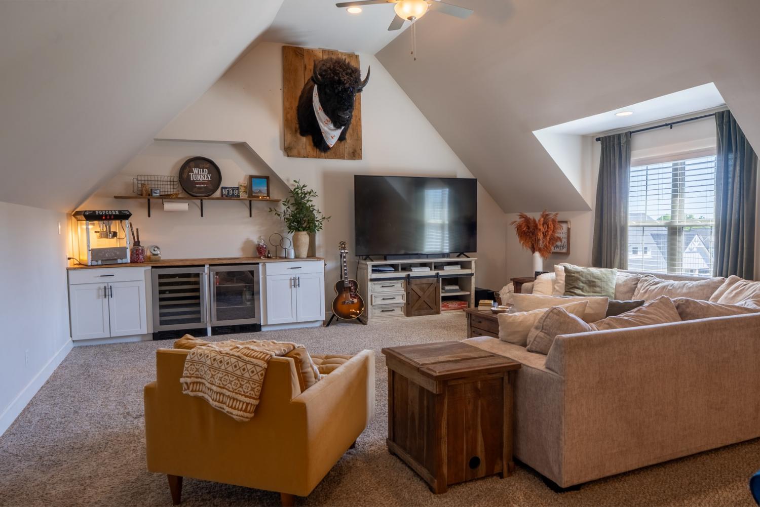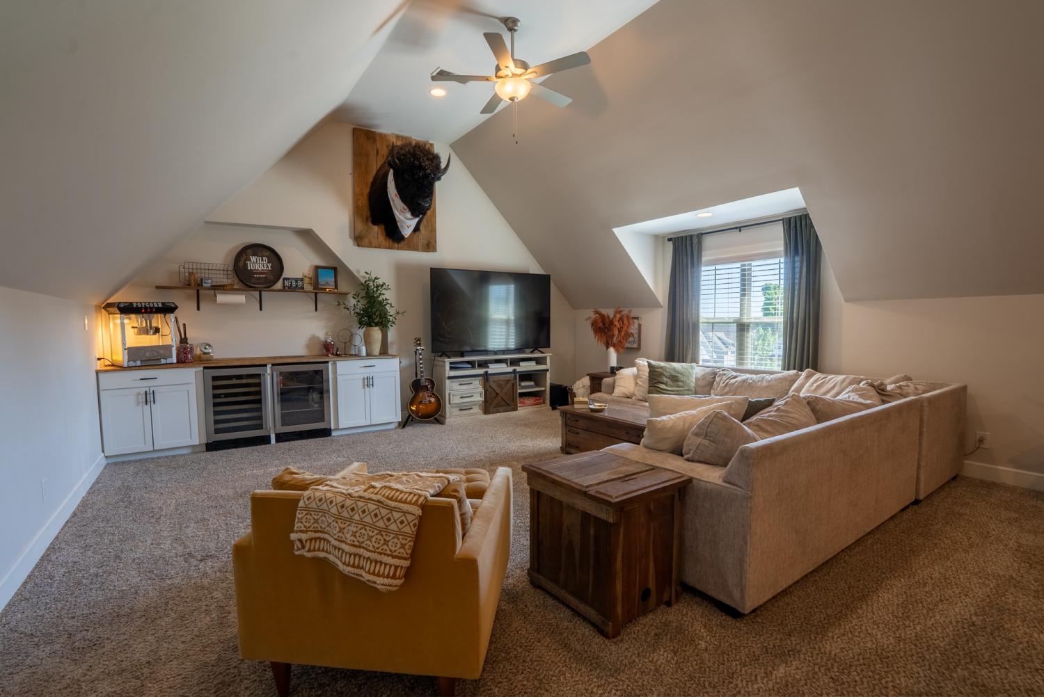 This 4-bedroom, 3 full bath home offers over 3,000 square feet of comfortable living space with a layout that’s perfect for both everyday living and hosting. Kitchen features built-in oven, microwave, and gas range, making it both functional and stylish. Upstairs, you’ll find a large bonus room with a wine fridge and beverage cooler, plus an additional bedroom and full bath—ideal for guests or extra living space and walk-in attic provides plenty of extra storage. Fridge, washer and dryer also included. Fenced backyard and covered deck are perfect for relaxing or entertaining outdoors. Conveniently located near the interstate, schools, and shopping, this home offers space, flexibility, and a great location all in one.