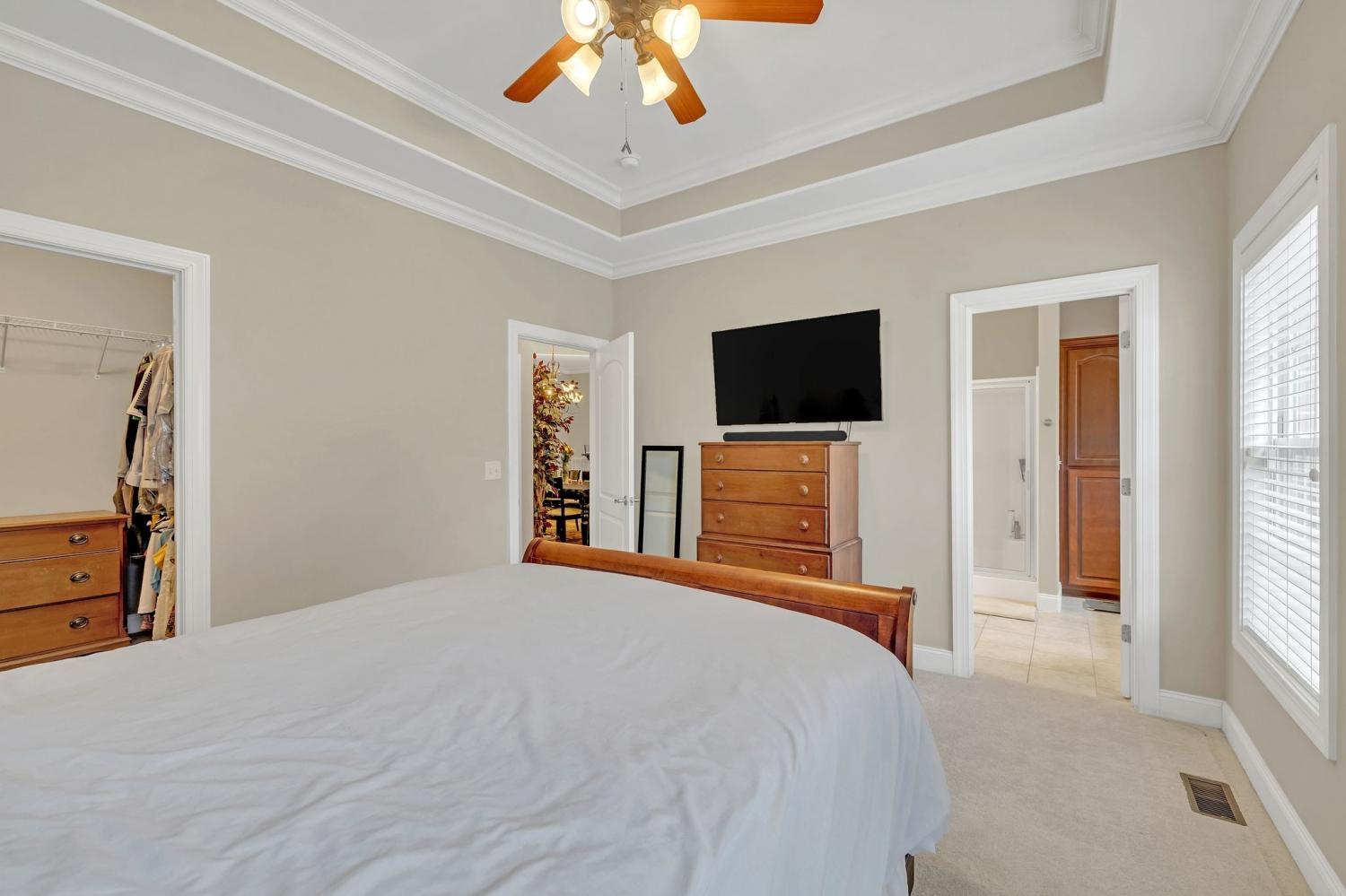 Beautiful one-level brick home with 3 bedrooms, 2 full baths, and an open-concept layout designed for comfortable everyday living. The spacious living, dining, and kitchen areas flow seamlessly together, with a large kitchen perfect for gathering and entertaining. The private primary suite includes a walk-in closet and en-suite bath with soaking tub, separate shower, and water closet. Additional features include a dedicated utility room and attached 2-car garage. Located in a community offering a pool and playground, with convenient access to shopping, dining, and the interstate — yet tucked into a neighborhood that maintains a quieter, more relaxed feel.