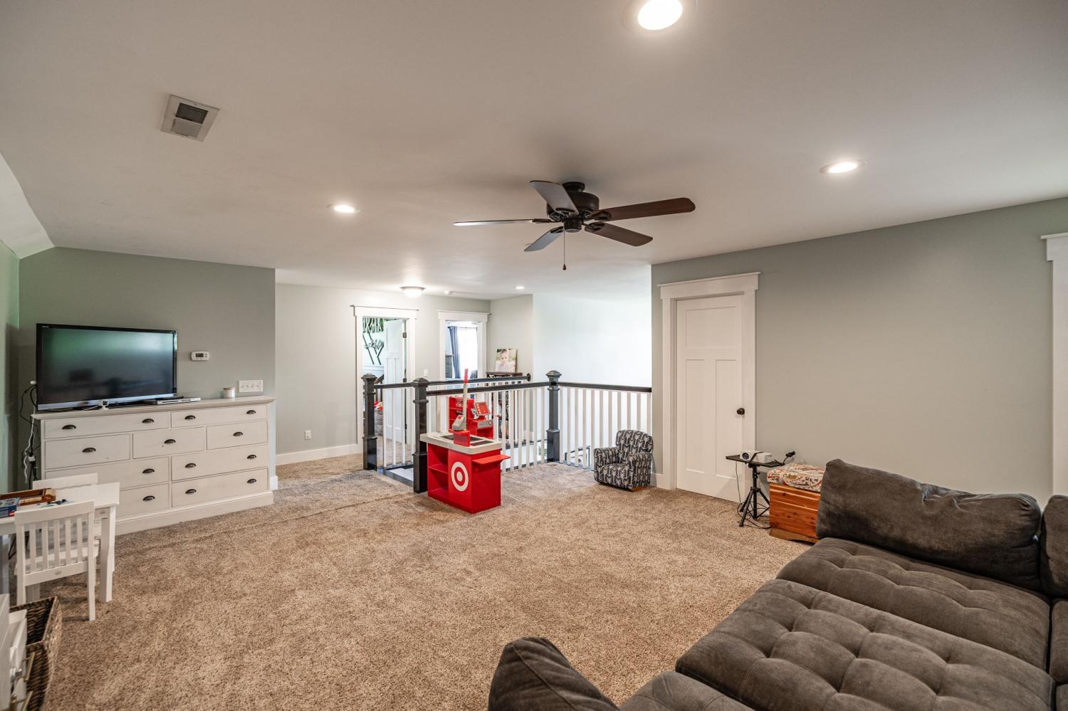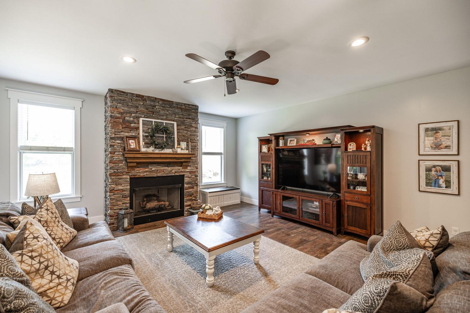 Beautiful home in the Grandview Subdivision - 4 large bedrooms, 2-1/2 baths, Chef's kitchen with large island complete with stainless appliances and granite countertops, Huge pantry, Gas fireplace with stacked stone in spacious living room, Walk-in closets in all the bedrooms, 3-car attached garage, Over-sized soaking tub and separate shower in master bath, Master bedroom on the main floor, House is very up-to-date with sliding doors and accent walls, Very nice layout, Modern look, Covered back patio and covered front porch, Concrete drive, Playset and sandbox to remain. Also included in this conveyance is 1.3 acres shown on Tax Map 112H A 031. The 1.3 acres is located within the flood plain and there is a sewer easement on the 1.3 acres. There is a gas line easement that runs across the property.