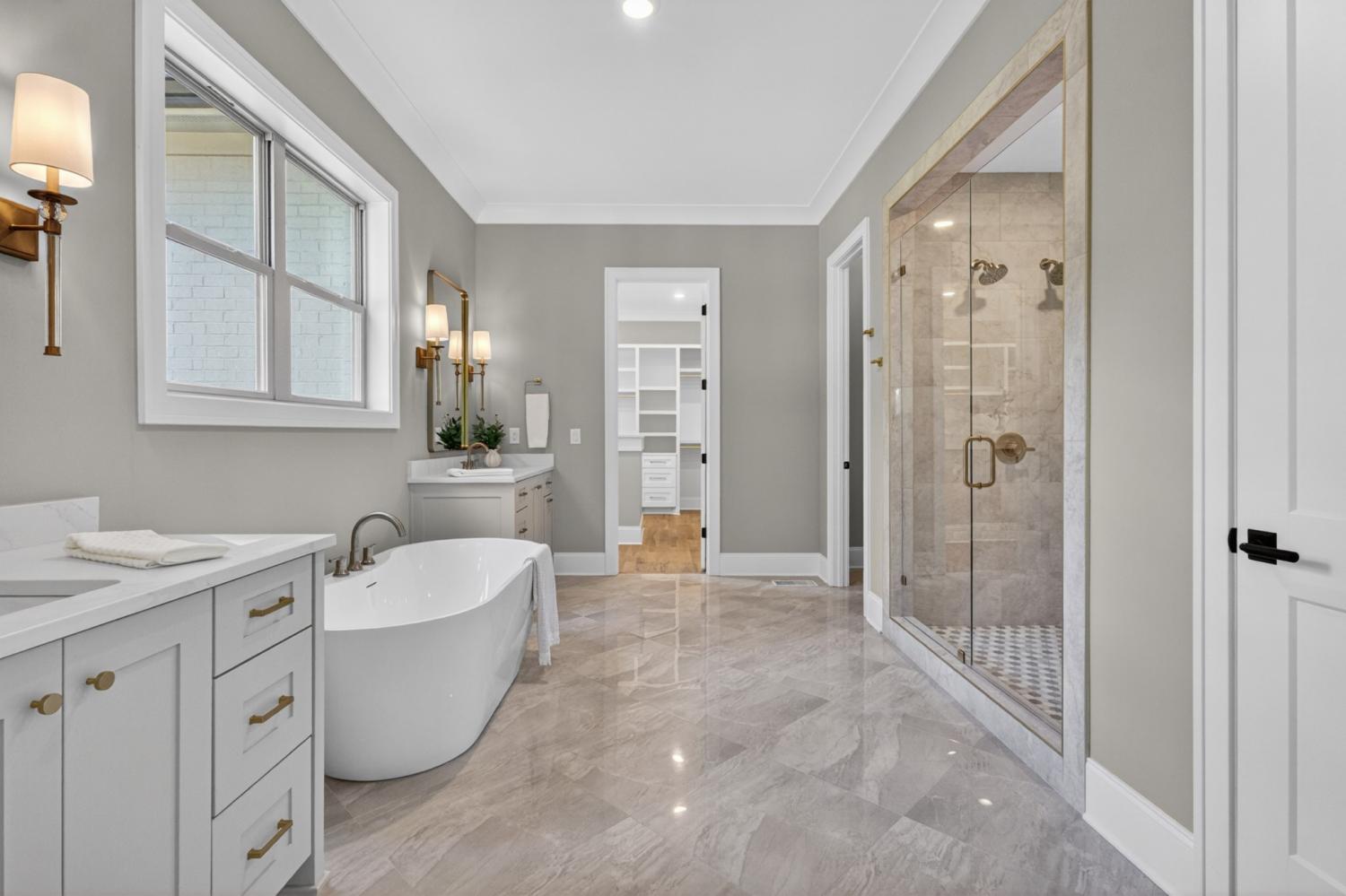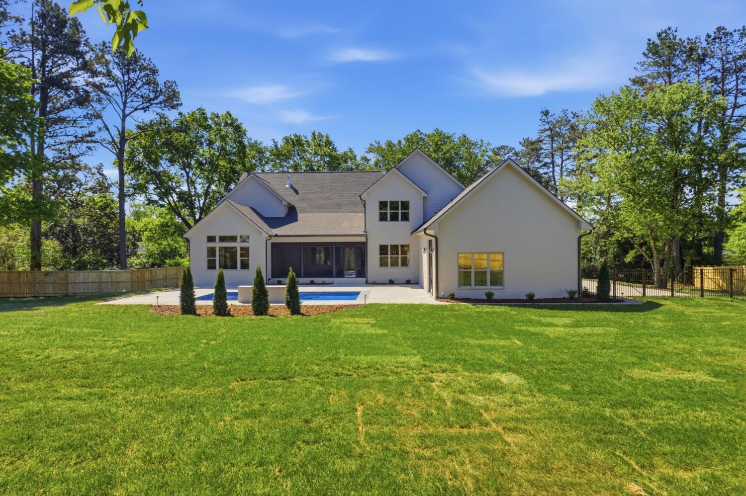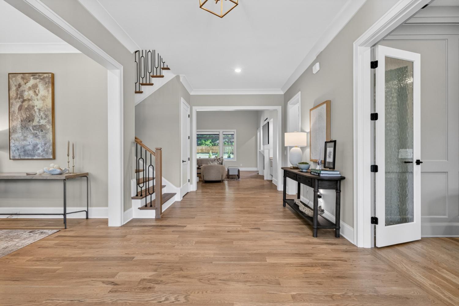 Tucked away on a picturesque cul-de-sac in one of Brentwood’s most cherished neighborhoods, this exquisite residence by 615 Custom Homes is a masterclass in thoughtful design, refined craftsmanship, & luxurious living. The exterior features natural stone accents, cedar columns & elegant iron railings.The study & formal dining room showcase floor-to-ceiling custom wainscoting. At the heart of the home, the breathtaking great room boasts a vaulted ceiling w/exposed beams & a stunning linear fireplace w/an ArcusStone surround, complemented by a framed television & illuminated floating shelves. The open-concept flows into a designer kitchen outfitted w/an oversized island, quartz countertops, marble backsplash & premium Thermador appliances. Exceptional butler’s pantry w/wine storage & illuminated shelving. A fully equipped scullery/pantry adds convenience & storage & the dinette offers light-filled space for casual meals. The main-level primary suite is a true retreat highlighted by a vaulted ceiling w/illuminated beams & views of the fenced backyard. The gorgeous bath includes a soaking tub, oversized shower & flows into a remarkable closet complete w/washer/dryer. The main laundry room is positioned off the drop zone & even has a walk up dog bath. Upstairs, three bedrooms offer comfort & flexibility. Charming dormers create cozy reading nooks w/a window seat & built-in bookcases. A spacious bonus room w/expansive wet bar is perfect for entertaining, and an upstairs laundry room adds convenience. The home offers abundant storage w/walk-in attic space & closets designed to accommodate a future elevator. A large screened porch overlooks a resort-style pool w/tanning ledge & waterfall, surrounded by generous decking and a lush backyard. A screened cabana has a half bath & creates the ultimate retreat. Garage is finished w/custom cabinetry & durable epoxy flooring. Minutes from conveniences, new Windy Hill Park & zoned for award-winning Brentwood schools. A true gem!