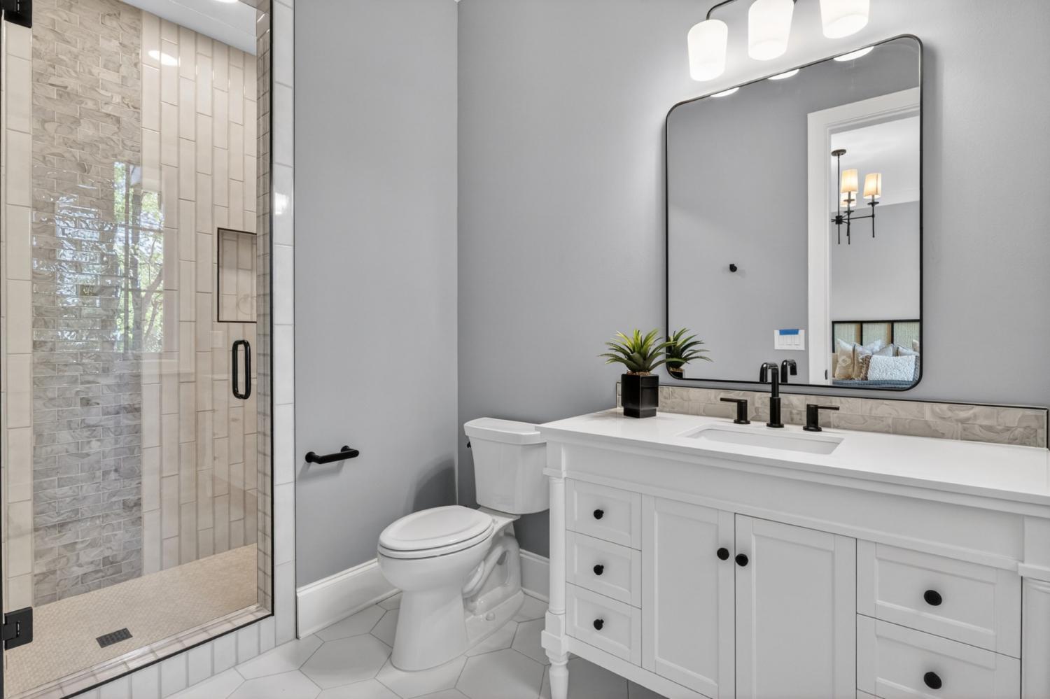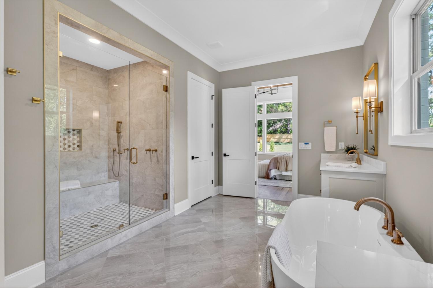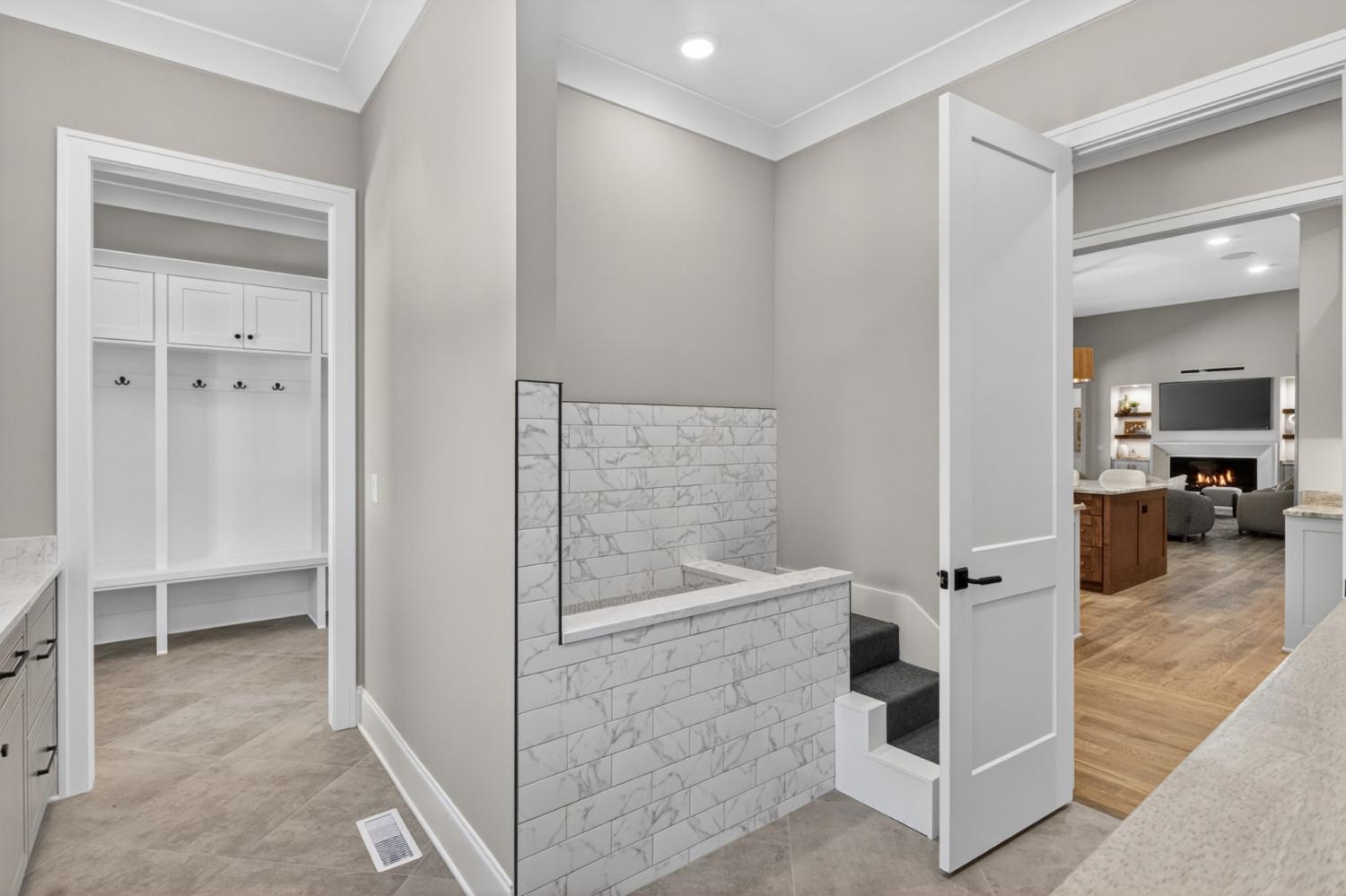 Tucked away on a picturesque cul-de-sac in one of Brentwood’s most cherished neighborhoods, this exquisite residence by 615 Custom Homes is a masterclass in thoughtful design, refined craftsmanship, & luxurious living. The exterior features natural stone accents, cedar columns & elegant iron railings.The study & formal dining room showcase floor-to-ceiling custom wainscoting. At the heart of the home, the breathtaking great room boasts a vaulted ceiling w/exposed beams & a stunning linear fireplace w/an ArcusStone surround, complemented by a framed television & illuminated floating shelves. The open-concept flows into a designer kitchen outfitted w/an oversized island, quartz countertops, marble backsplash & premium Thermador appliances. Exceptional butler’s pantry w/wine storage & illuminated shelving. A fully equipped scullery/pantry adds convenience & storage & the dinette offers light-filled space for casual meals. The main-level primary suite is a true retreat highlighted by a vaulted ceiling w/illuminated beams & views of the fenced backyard. The gorgeous bath includes a soaking tub, oversized shower & flows into a remarkable closet complete w/washer/dryer. The main laundry room is positioned off the drop zone & even has a walk up dog bath. Upstairs, three bedrooms offer comfort & flexibility. Charming dormers create cozy reading nooks w/a window seat & built-in bookcases. A spacious bonus room w/expansive wet bar is perfect for entertaining, and an upstairs laundry room adds convenience. The home offers abundant storage w/walk-in attic space & closets designed to accommodate a future elevator. A large screened porch overlooks a resort-style pool w/tanning ledge & waterfall, surrounded by generous decking and a lush backyard. A screened cabana has a half bath & creates the ultimate retreat. Garage is finished w/custom cabinetry & durable epoxy flooring. Minutes from conveniences, new Windy Hill Park & zoned for award-winning Brentwood schools. A true gem!