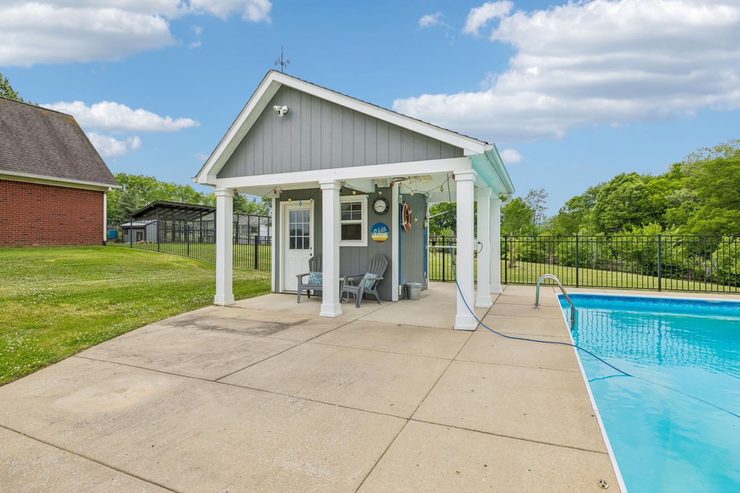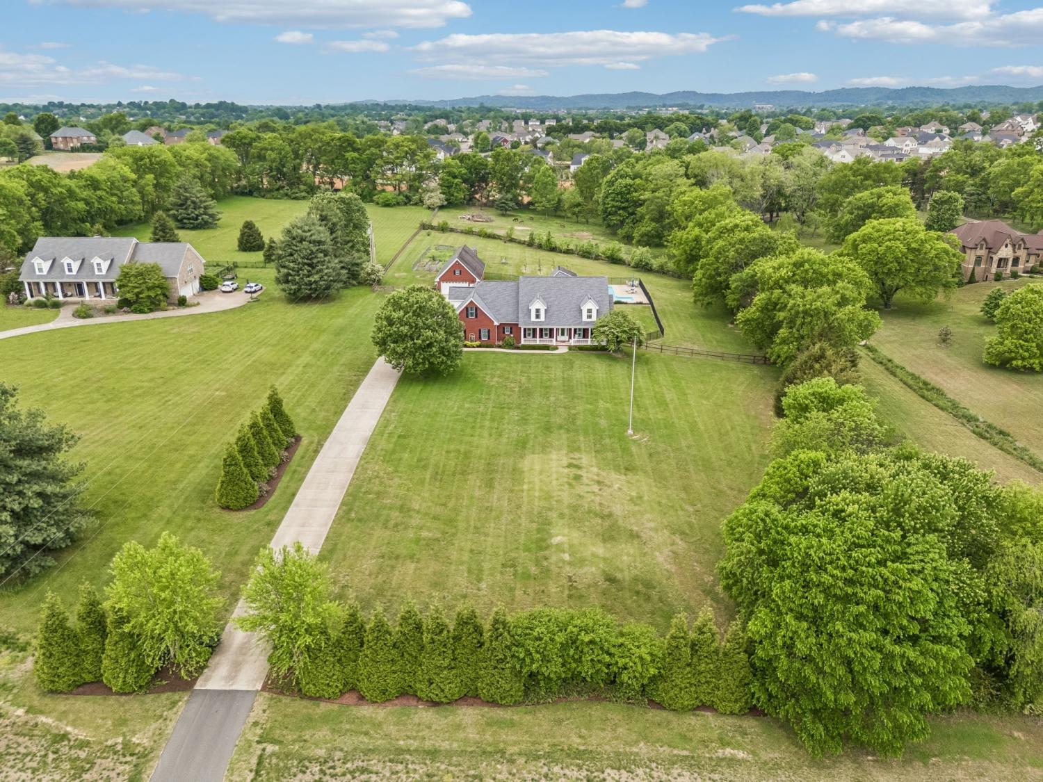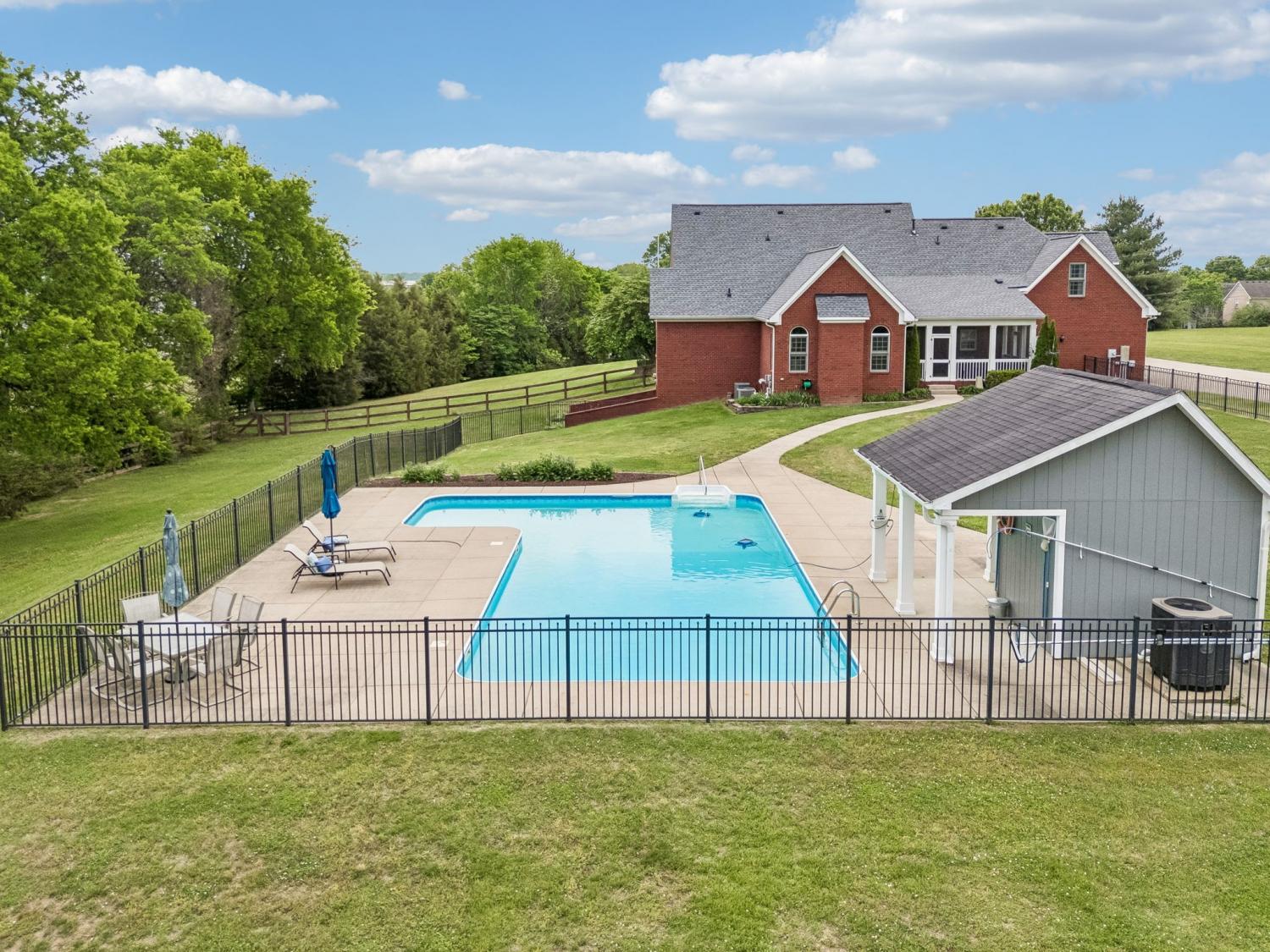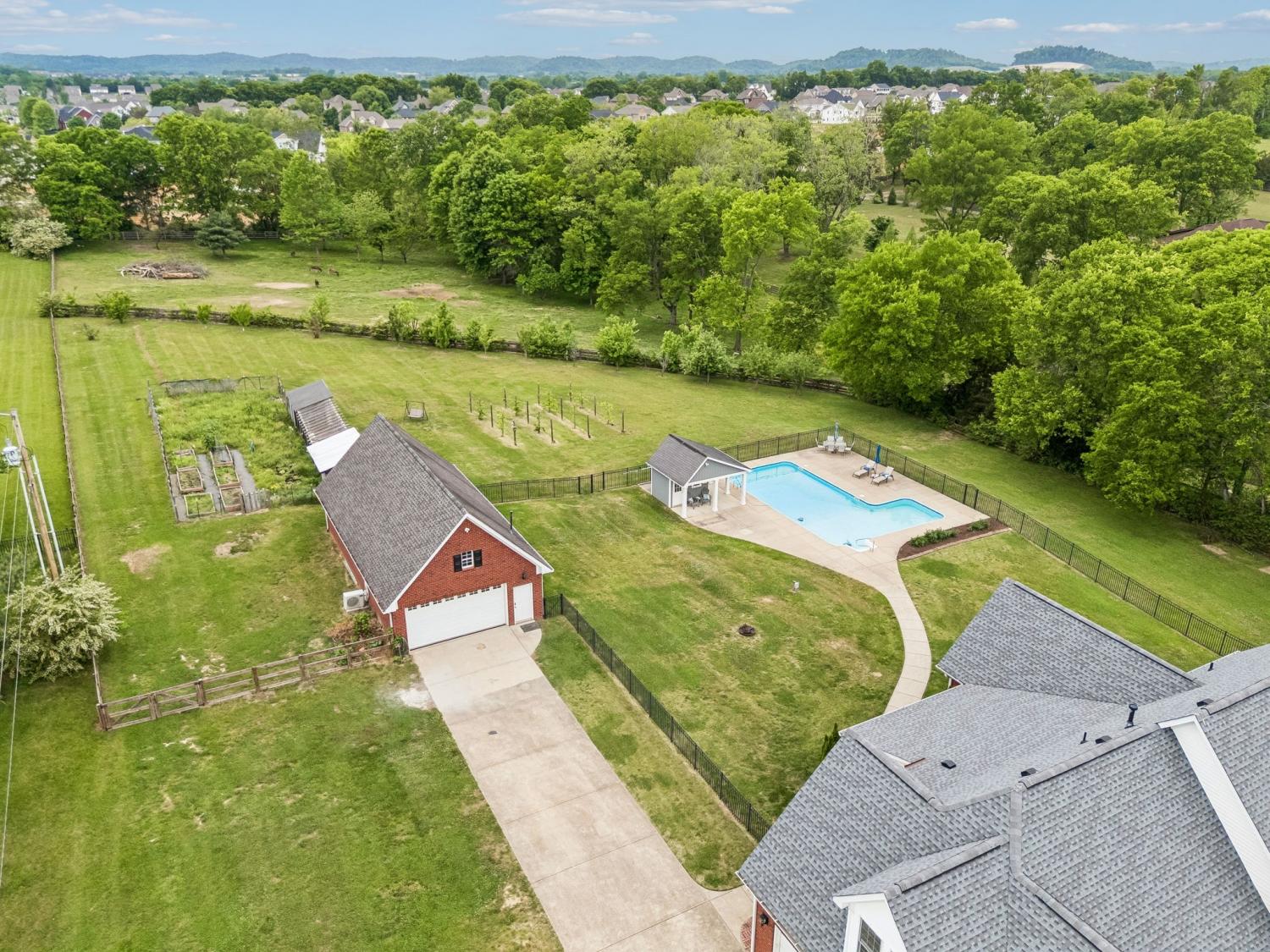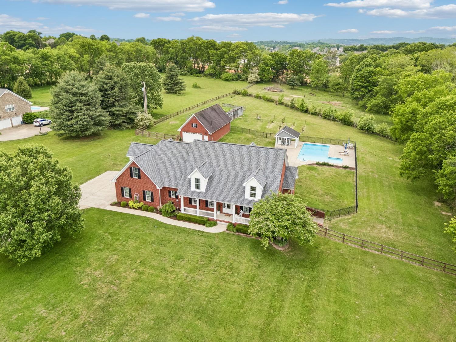 All offers due Sunday by 8 pm. Experience the best of country living in Spring Hill with this beautiful property set on over 3 private acres, just 30 minutes from Nashville. Enjoy quick access to Main Street in Spring Hill for shopping, dining, and entertainment, as well as convenient access to Thompsons Station and I-65. This beautifully maintained home has seen extensive updates, including a new roof in 2022 and a new water heater in 2023. Renovations completed in 2020 include a whole-home water filtration system, new HVAC, fully remodeled bathrooms, updated fencing and gates, fresh paint, refinished wood floors, basement drywall and tile, kitchen backsplash and pot filler, new kitchen appliances, updated landscaping, a pool heat pump, and a screened-in back porch. Full of character and space, the home welcomes you with a large front porch and an inviting foyer that leads to a home office and opens into the expansive kitchen and dining area. The kitchen is a standout feature with abundant cabinetry, granite countertops, double ovens, a gas cooktop, pot filler, and a large island. The living room features vaulted ceilings and a stunning stone floor-to-ceiling fireplace. The primary suite is located on the main level and includes an ensuite bath with double vanities, a tiled frameless glass shower, a freestanding tub, and a walk-in closet. Upstairs, two spacious bedrooms with walk-in closets share a full bathroom, while an oversized bonus room includes its own full bath. The basement offers an additional 1,952 square feet with heating and cooling and has been partially finished with drywall. A dedicated room with built-in shelving makes for an ideal private office or workspace. Step outside to enjoy the screened-in back porch, an attached 3-car garage, and a detached 24x40 garage/workshop. The outdoor space is truly a retreat, featuring an in-ground pool with a pool house and fenced area, a chicken coop and run, and a garden. This property truly has it all!